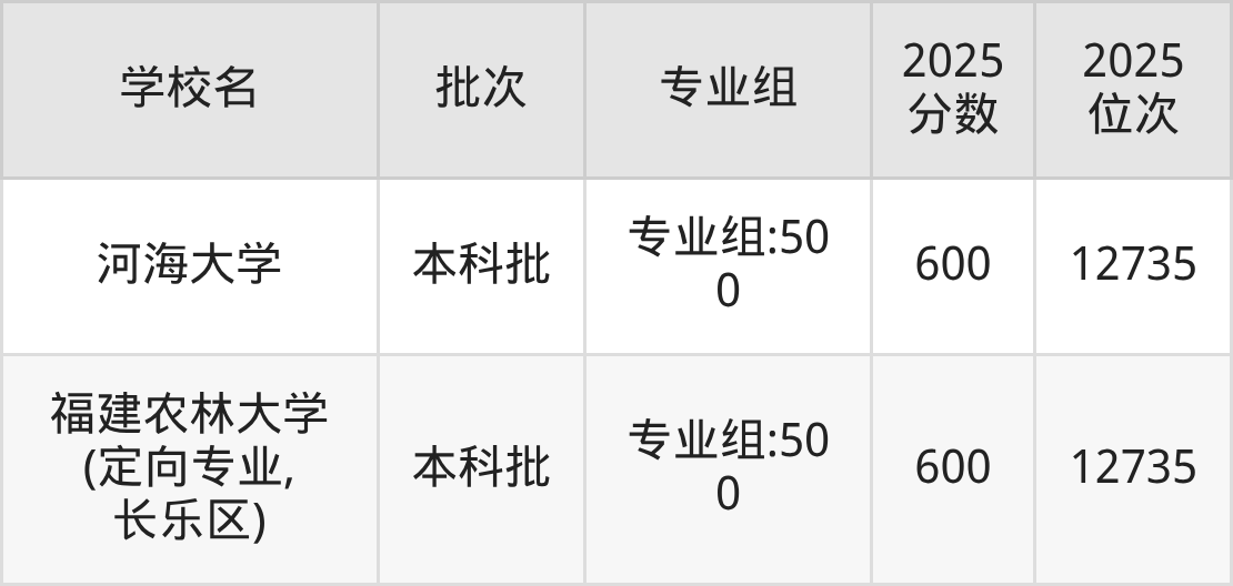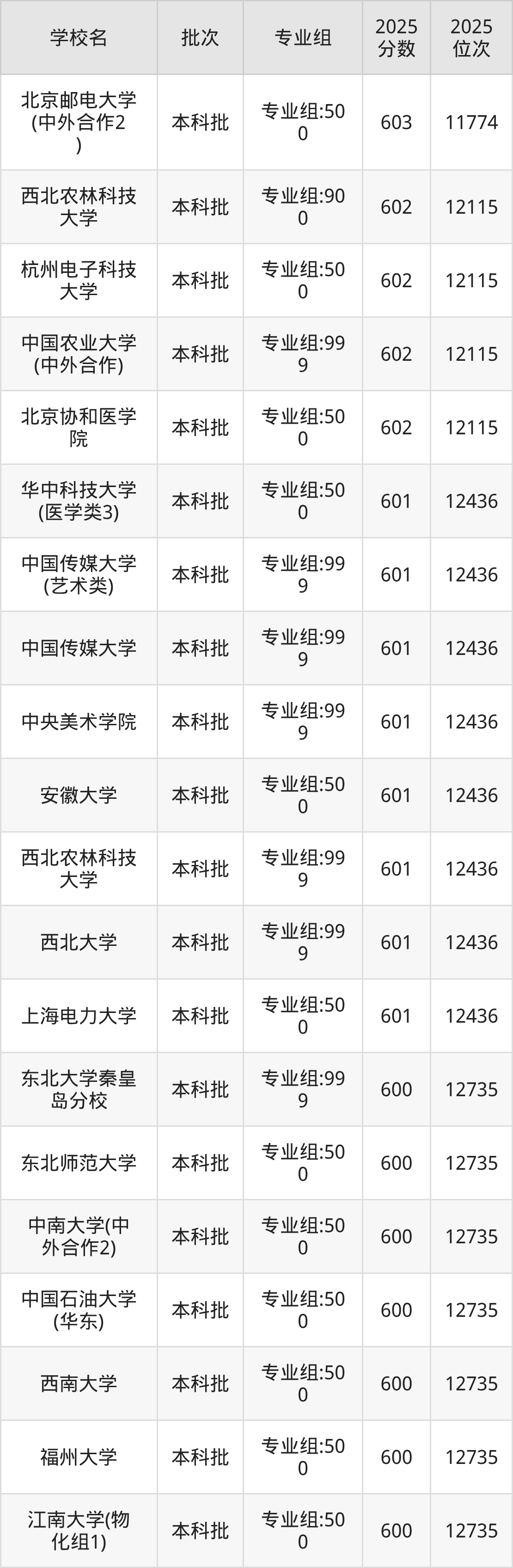 这些都是2026年高考物理类12116名~12436名考生可以报考的大学,更多学校名单如下表所示: