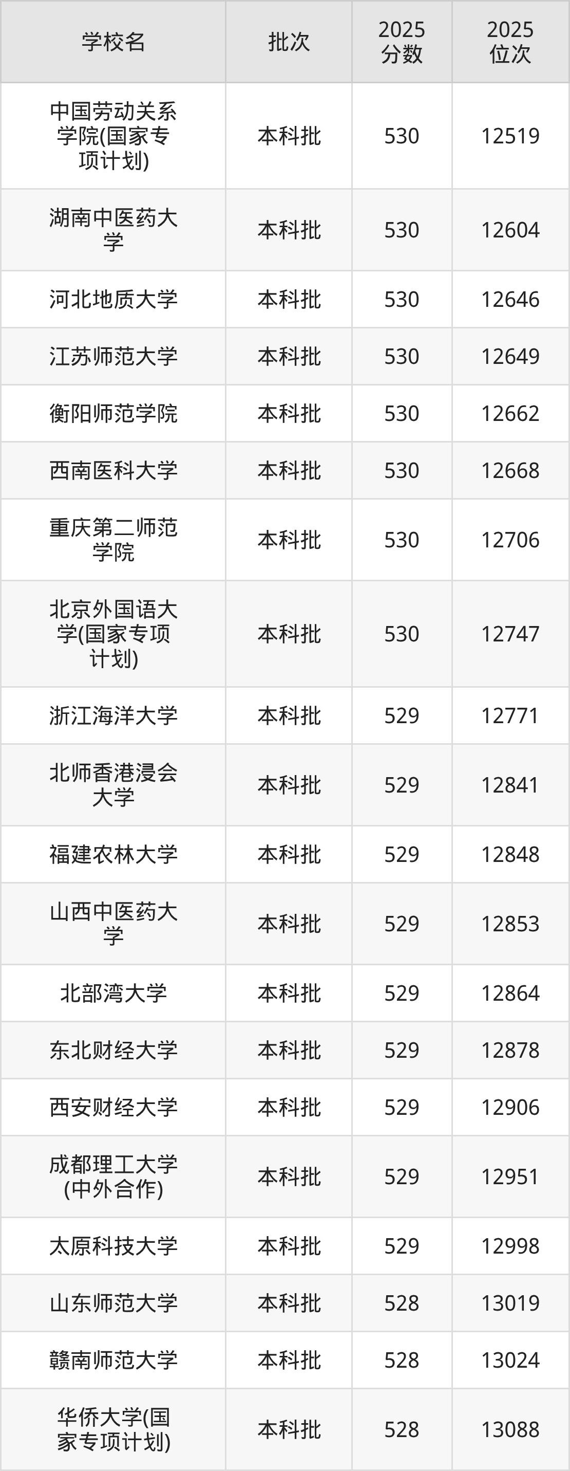 另外录取位次低于该区间(较稳妥)的有中南林业科技大学(13275名)、西北民族大学(国家专项计划)(13276名)等;录取位次高于该区间(可冲)的有太原科技大学(12998名)、成都理工大学(中外合作)(12951名)等。