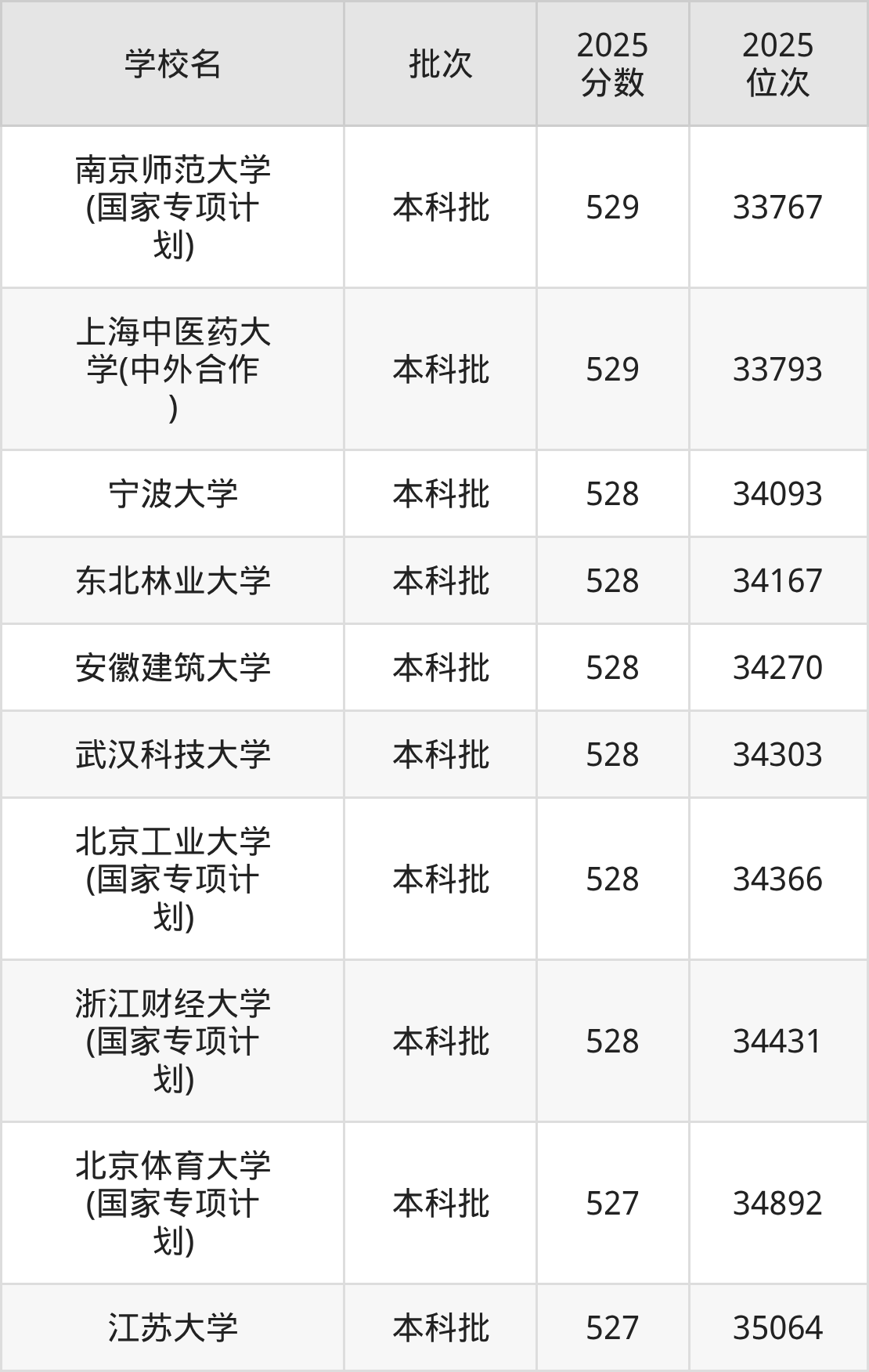 另外录取位次低于该区间(较稳妥)的有北京体育大学(国家专项计划)(34892名)、江苏大学(35064名)等;录取位次高于该区间(可冲)的有上海中医药大学(中外合作)(33793名)、南京师范大学(国家专项计划)(33767名)等。