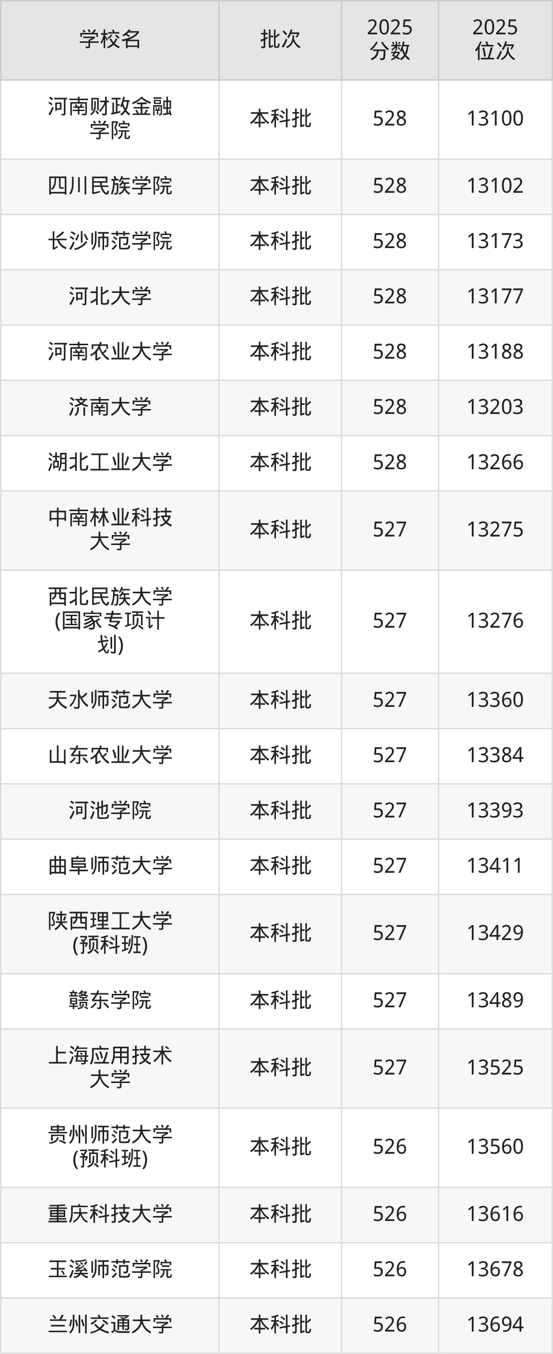 2025年贵州高考历史类528分(13018名~13266名)能上的大学有河南财政金融学院、长沙师范学院、华侨大学(国家专项计划)、河南农业大学等。