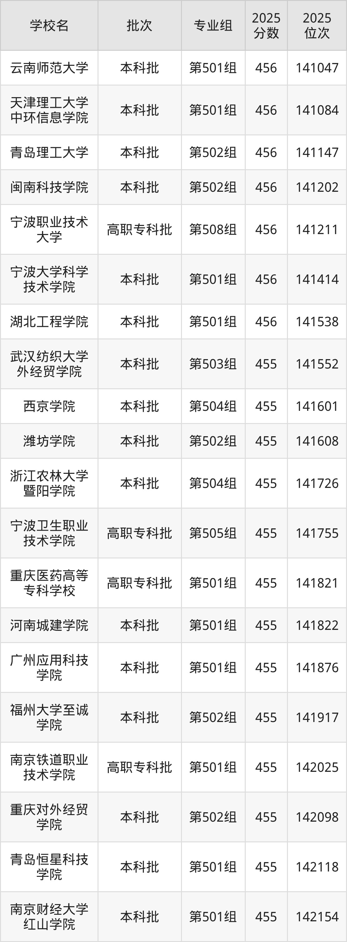 这些都是2026年高考物理类141544名~142774名考生可以报考的大学,更多学校名单如下表所示: