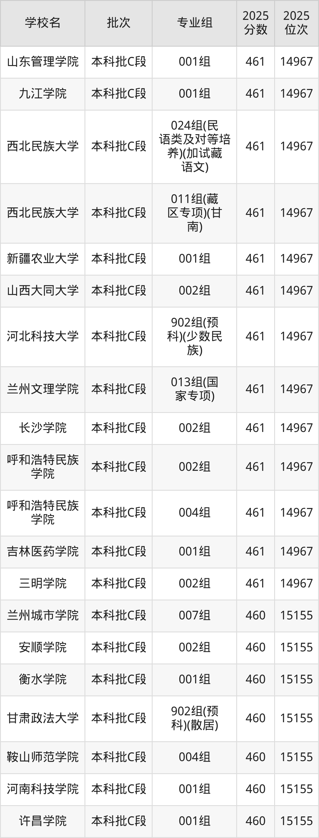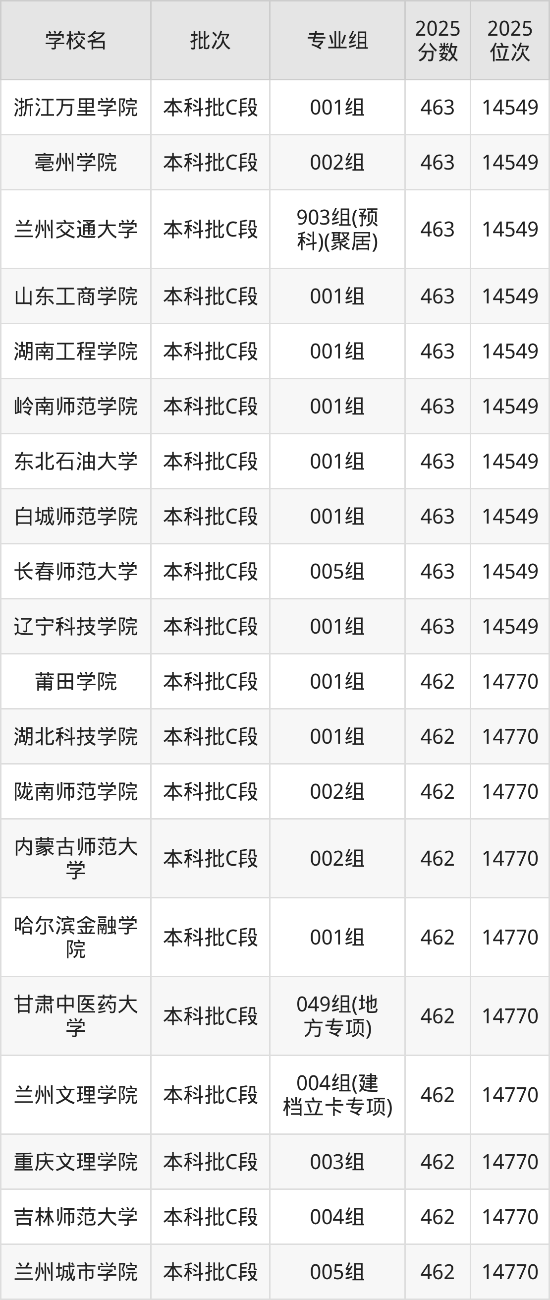 2025年甘肃高考历史类460分(14968名~15155名)能上的大学有衡水学院001组、鞍山师范学院004组、河南科技学院001组、许昌学院001组等。