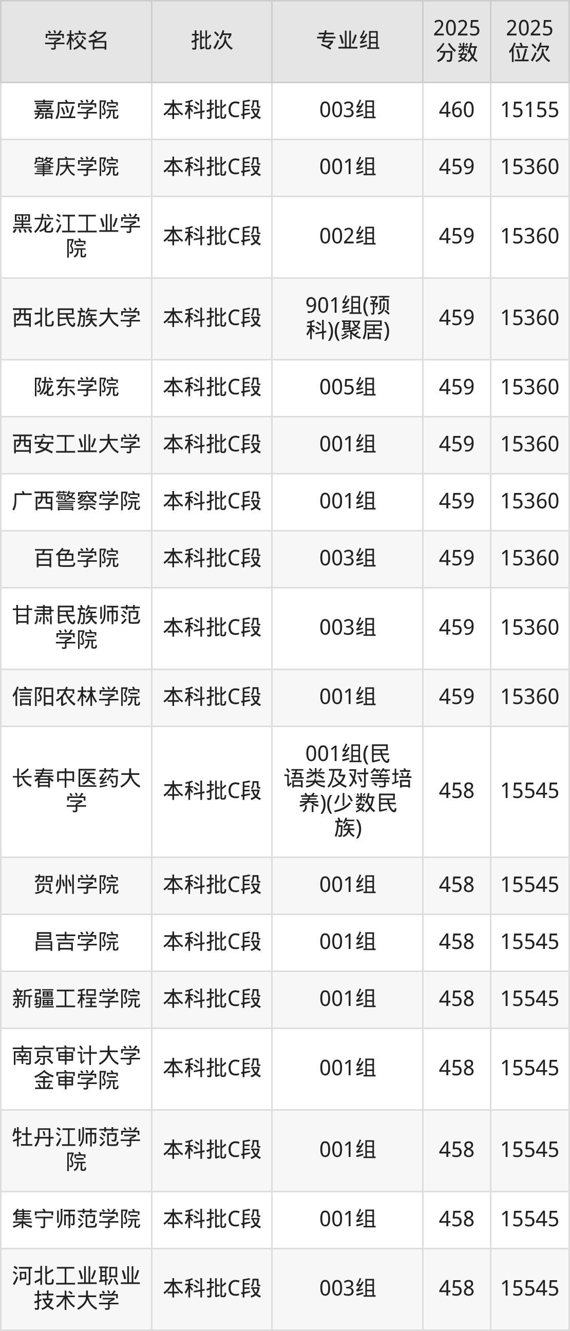这些都是2026年高考历史类14968名~15155名考生可以报考的大学,更多学校名单如下表所示: