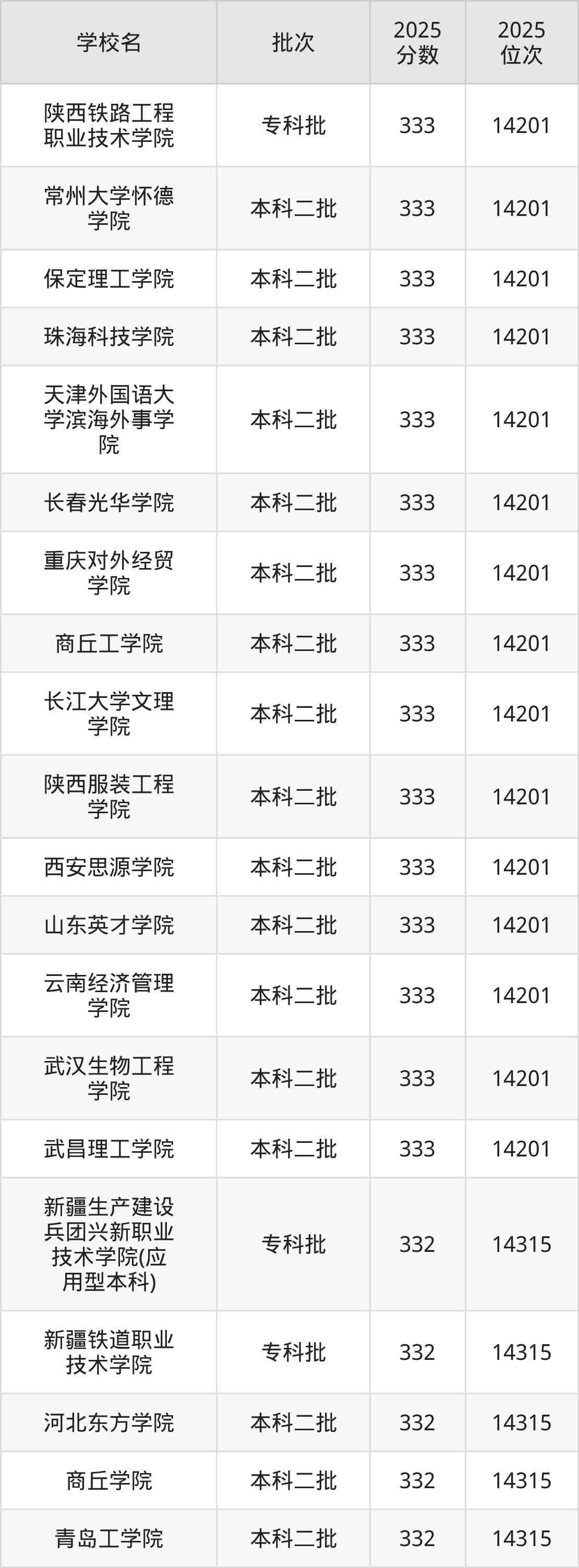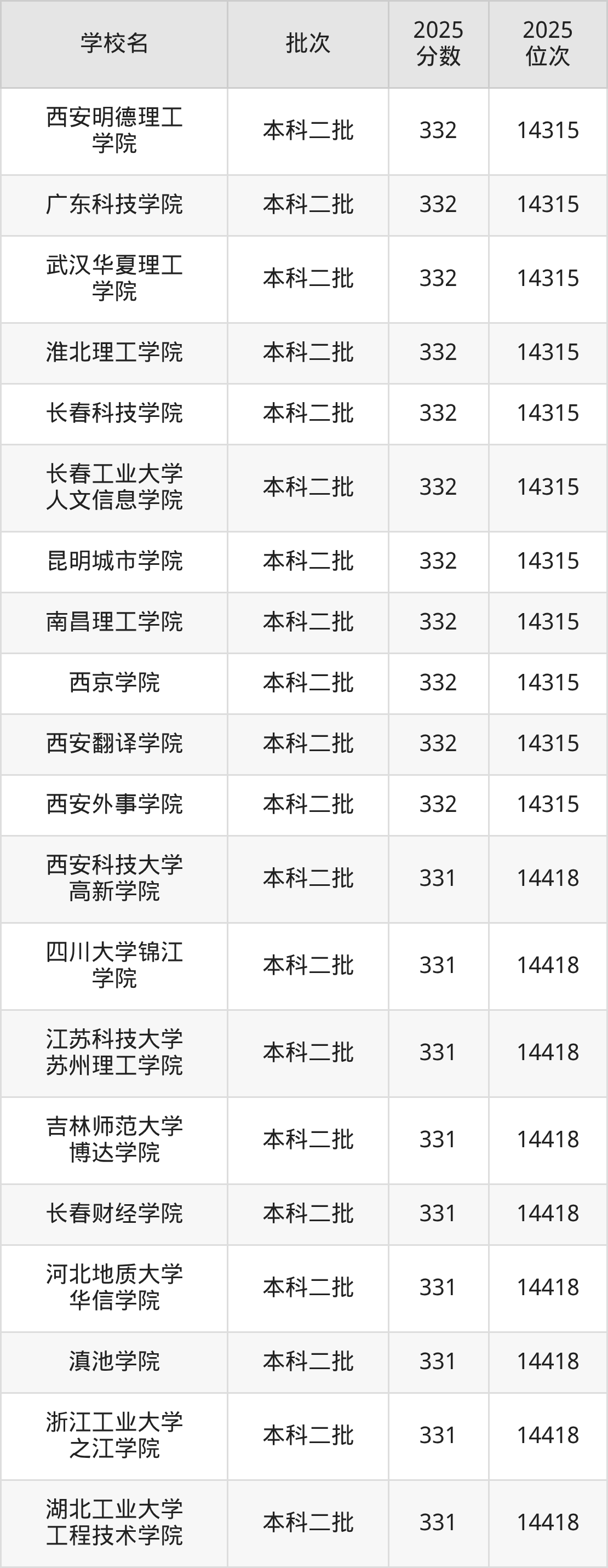 这些都是2026年高考理科35239名~35437名考生可以报考的大学,更多学校名单如下表所示: