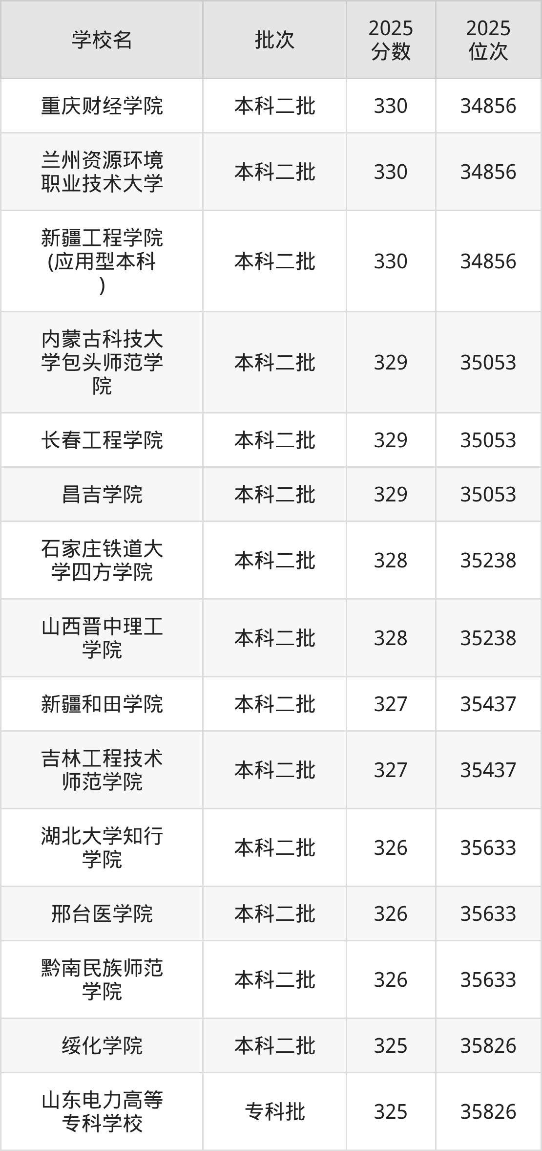 2025年新疆高考理科327分(35239名~35437名)能上的大学有吉林工程技术师范学院、新疆和田学院。