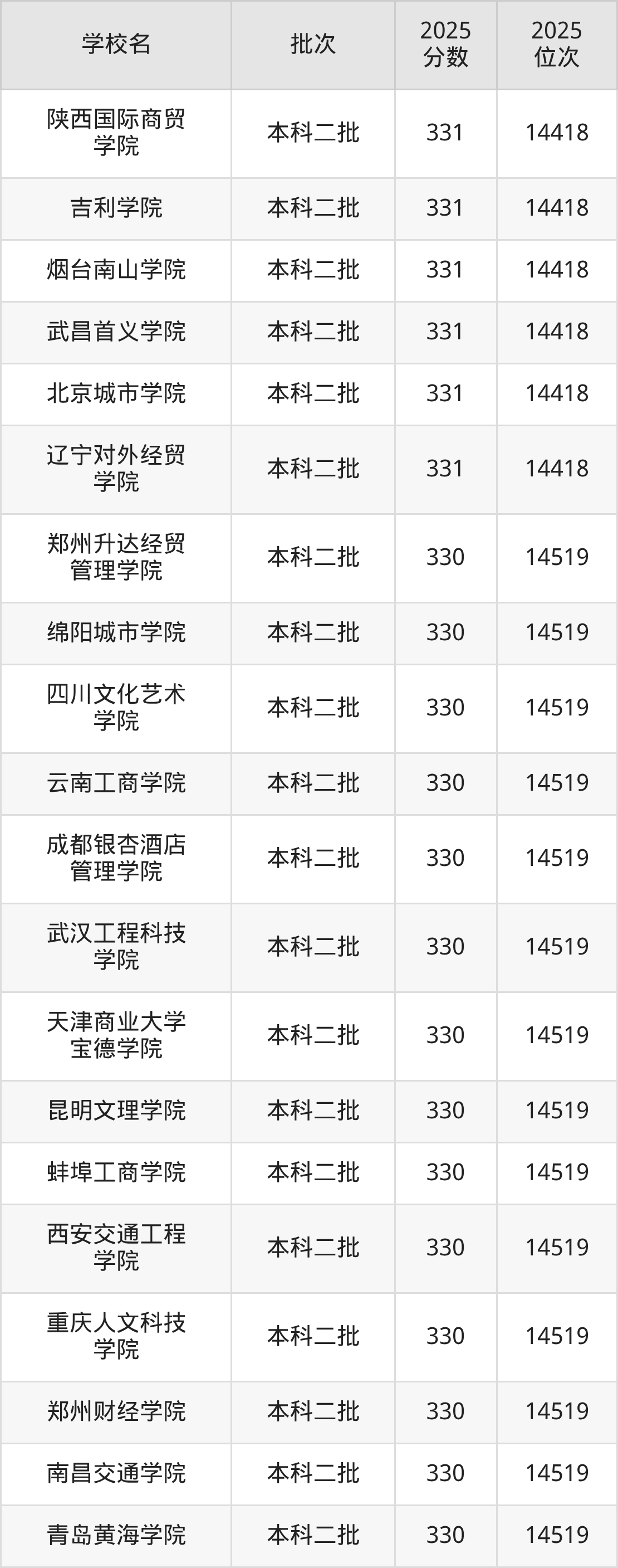 这些都是2026年高考文科14690名~14761名考生可以报考的大学,更多学校名单如下表所示: