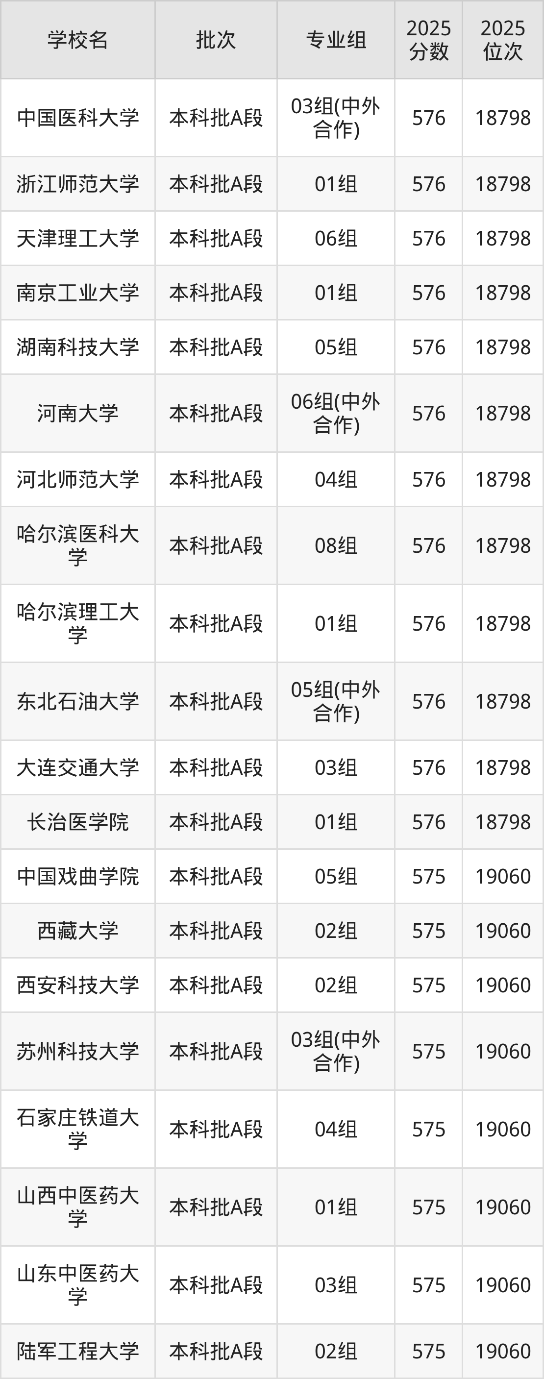 2025年天津高考574分(19061名~19332名)能上的大学有长春理工大学04组、甘肃政法大学01组、华侨大学08组、南昌航空大学02组等。
