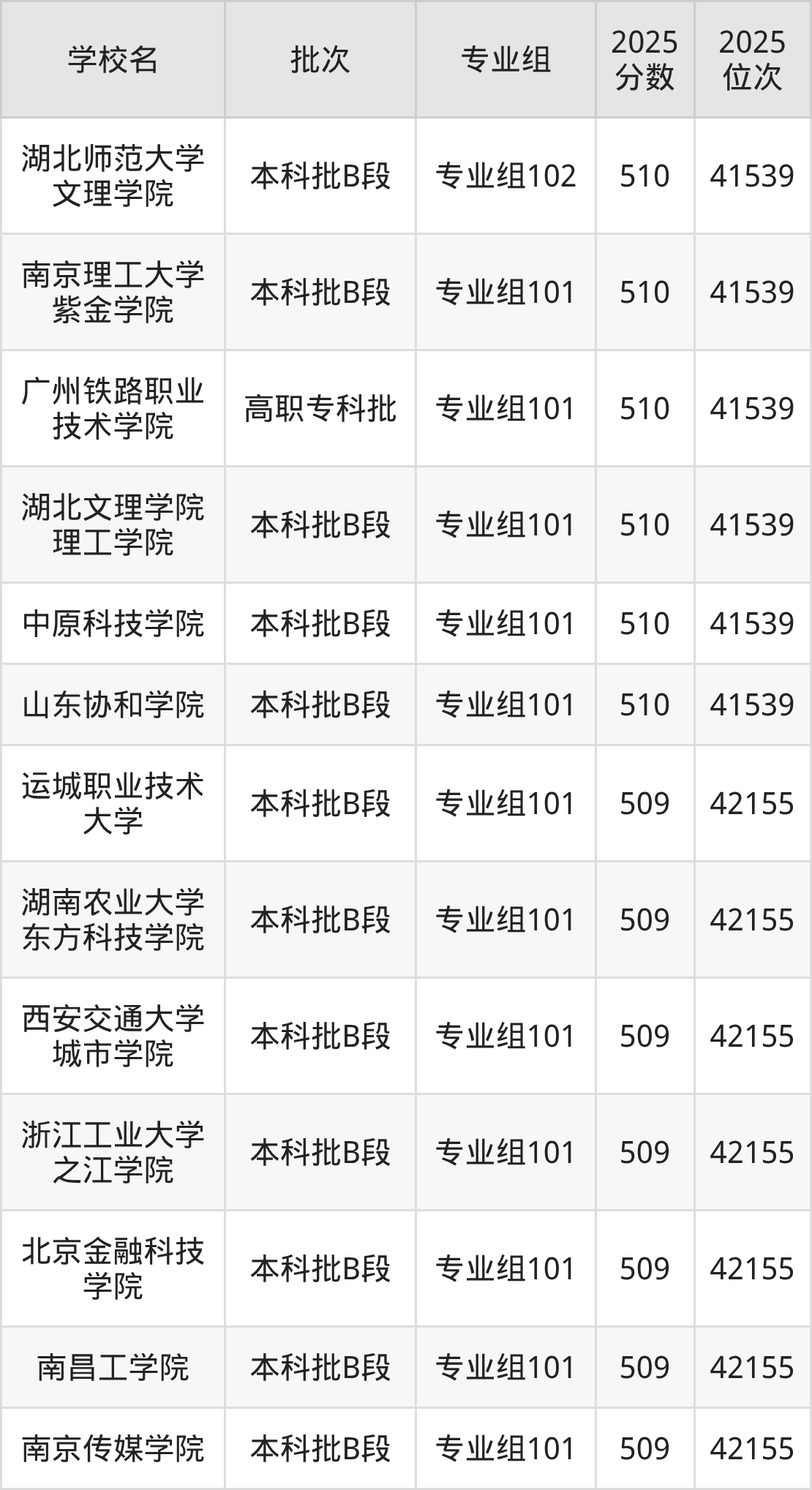这些都是2026年高考历史类41540名~42155名考生可以报考的大学,更多学校名单如下表所示: