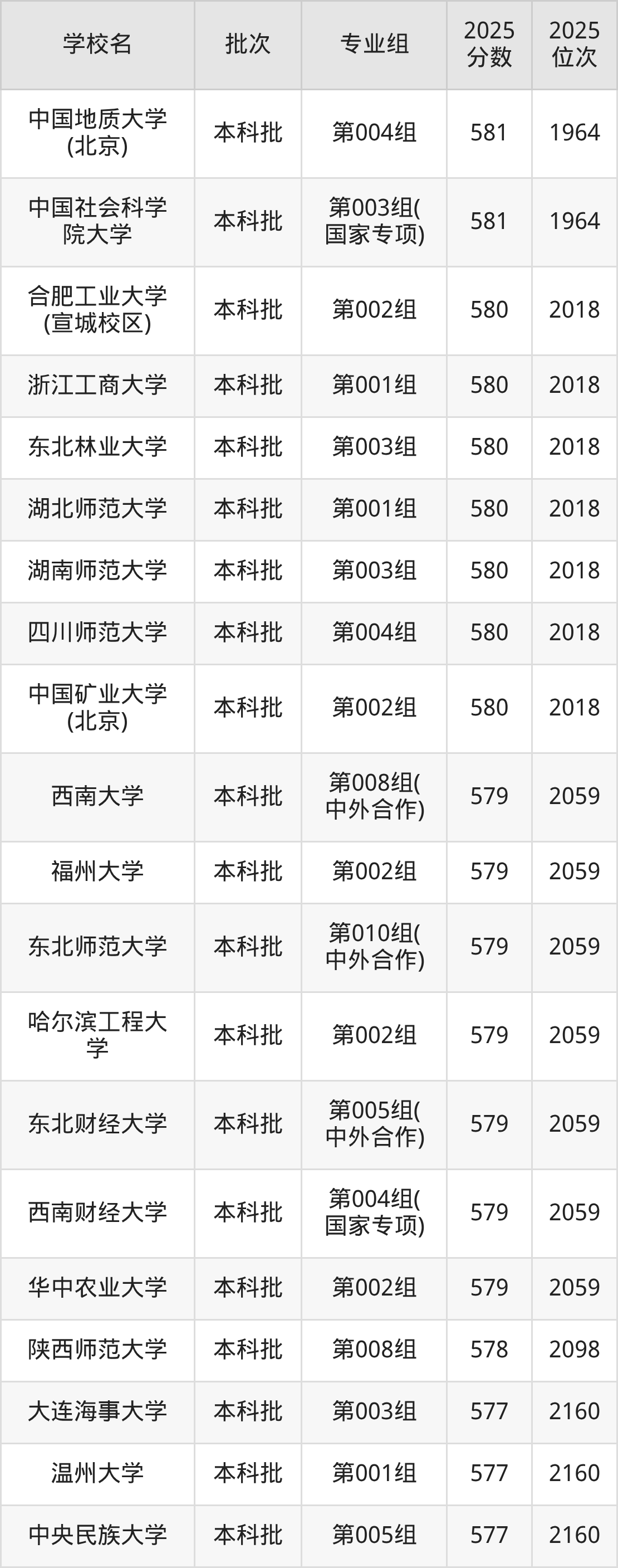 这些都是2026年高考历史类2308名~2356名考生可以报考的大学,更多学校名单如下表所示: