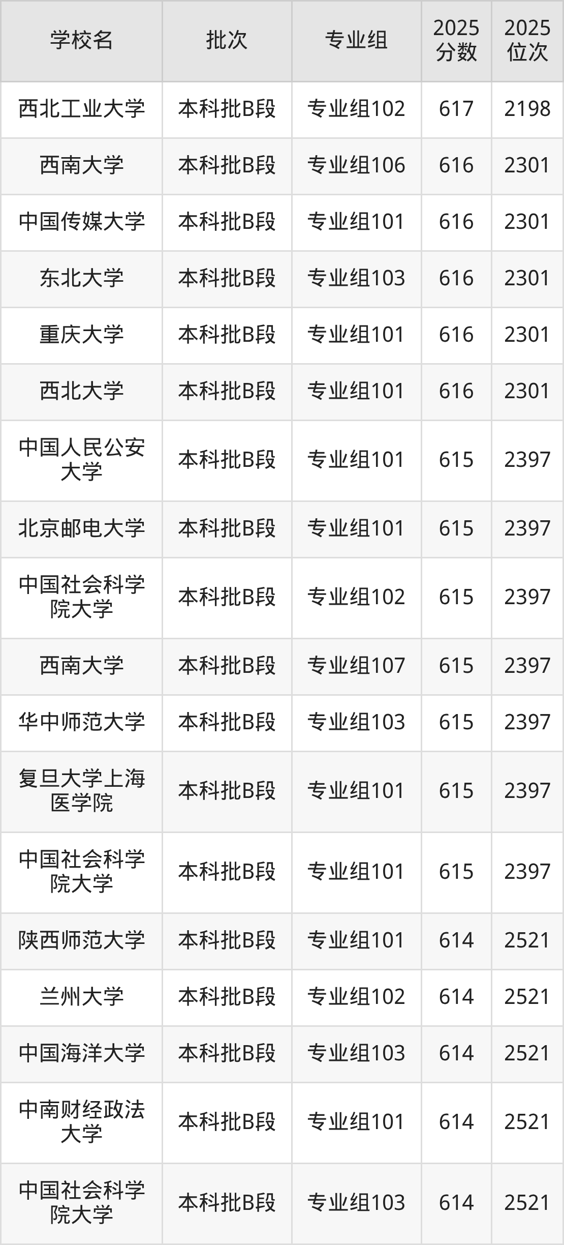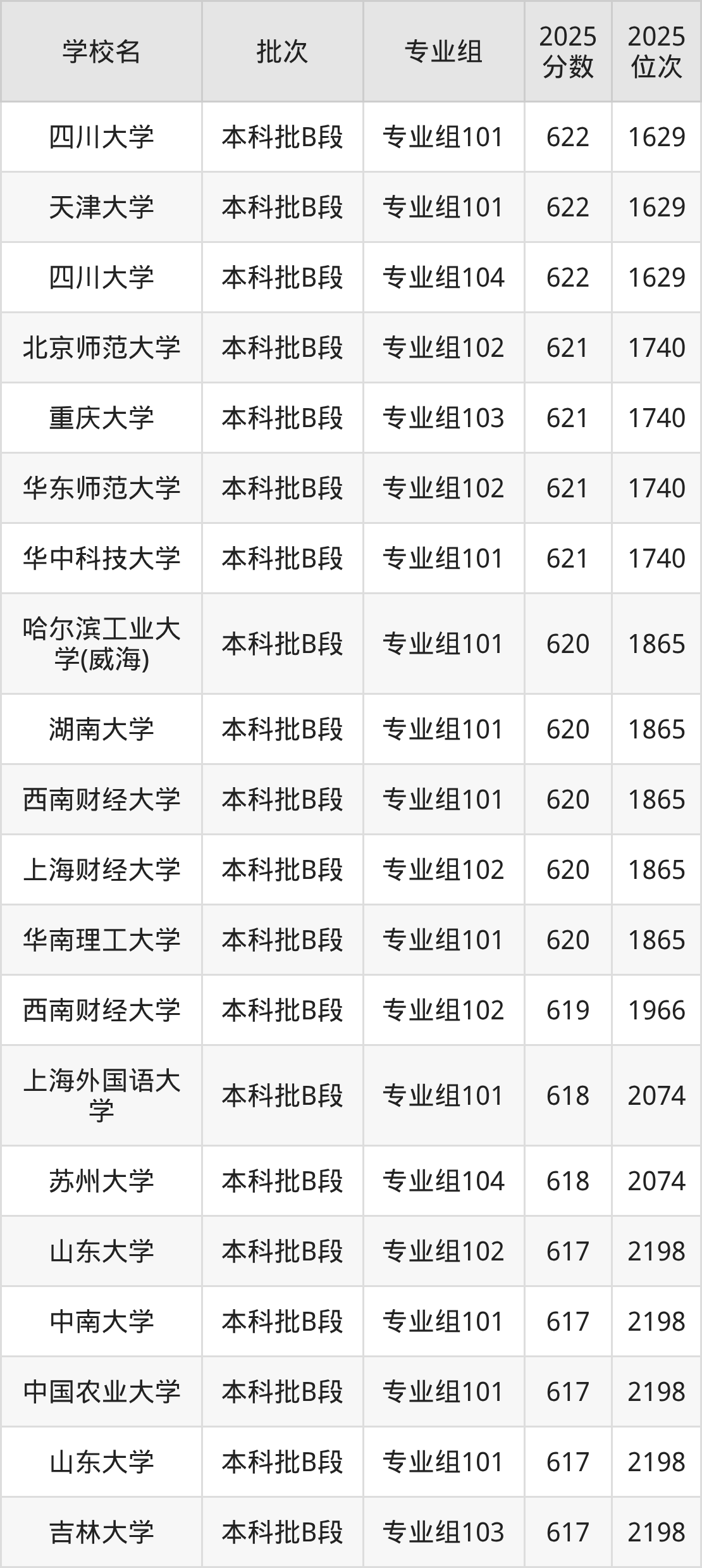 另外录取位次低于该区间(较稳妥)的有吉林大学专业组103(2198名)、中南大学专业组101(2198名)等;录取位次高于该区间(可冲)的有西南财经大学专业组102(1966名)、上海财经大学专业组102(1865名)等。