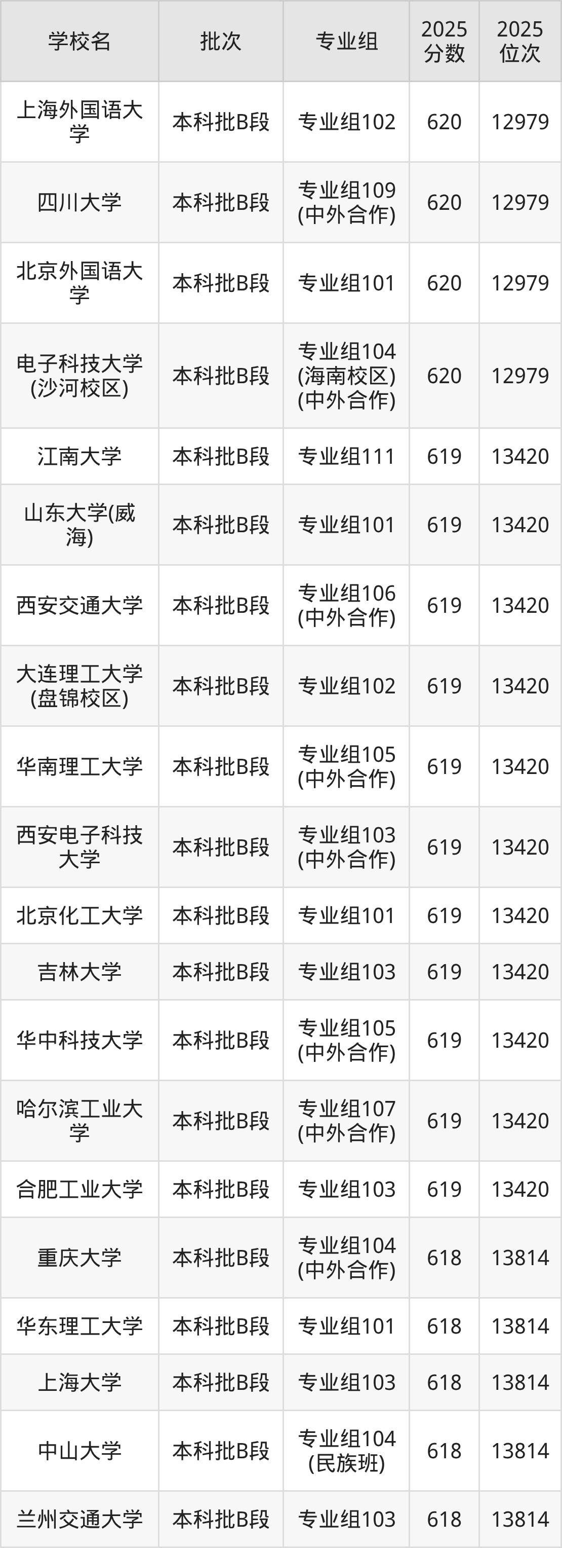 另外录取位次低于该区间(较稳妥)的有中国石油大学(北京)专业组101(14292名)、上海外国语大学专业组101(14292名)等;录取位次高于该区间(可冲)的有华南理工大学专业组105(中外合作)(13420名)、西安电子科技大学专业组103(中外合作)(13420名)等。