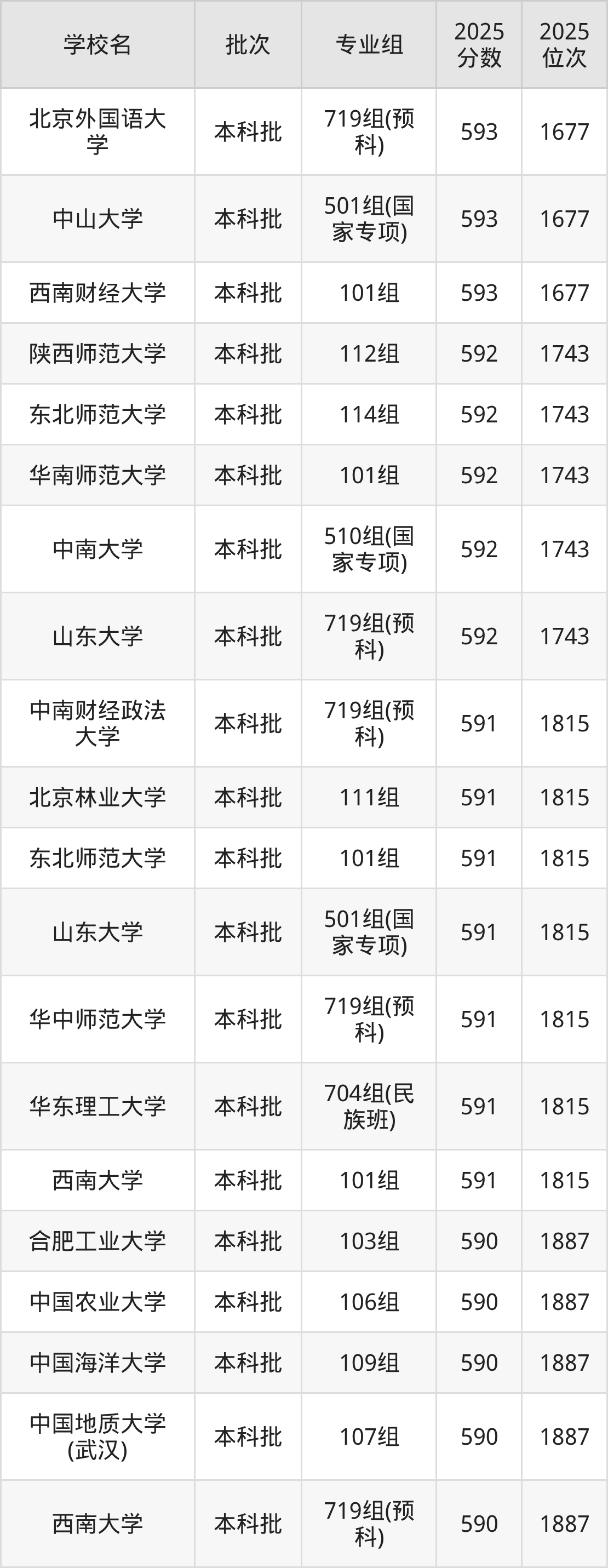 这些都是2026年高考历史类2168名~2242名考生可以报考的大学,更多学校名单如下表所示: