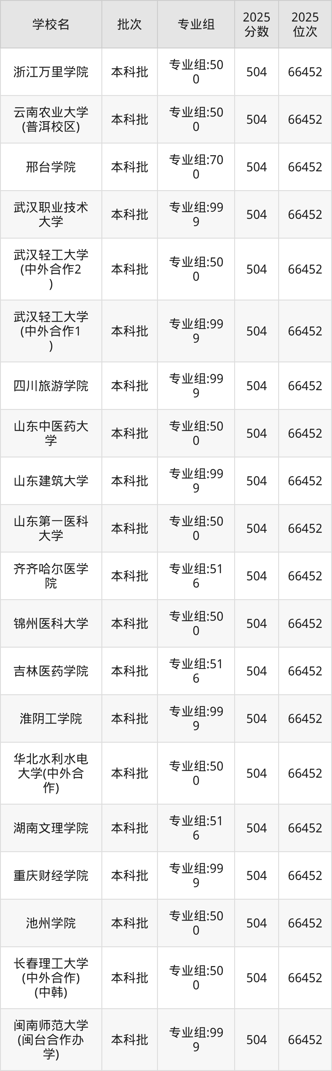 这些都是2026年高考物理类66453名~67246名考生可以报考的大学,更多学校名单如下表所示: