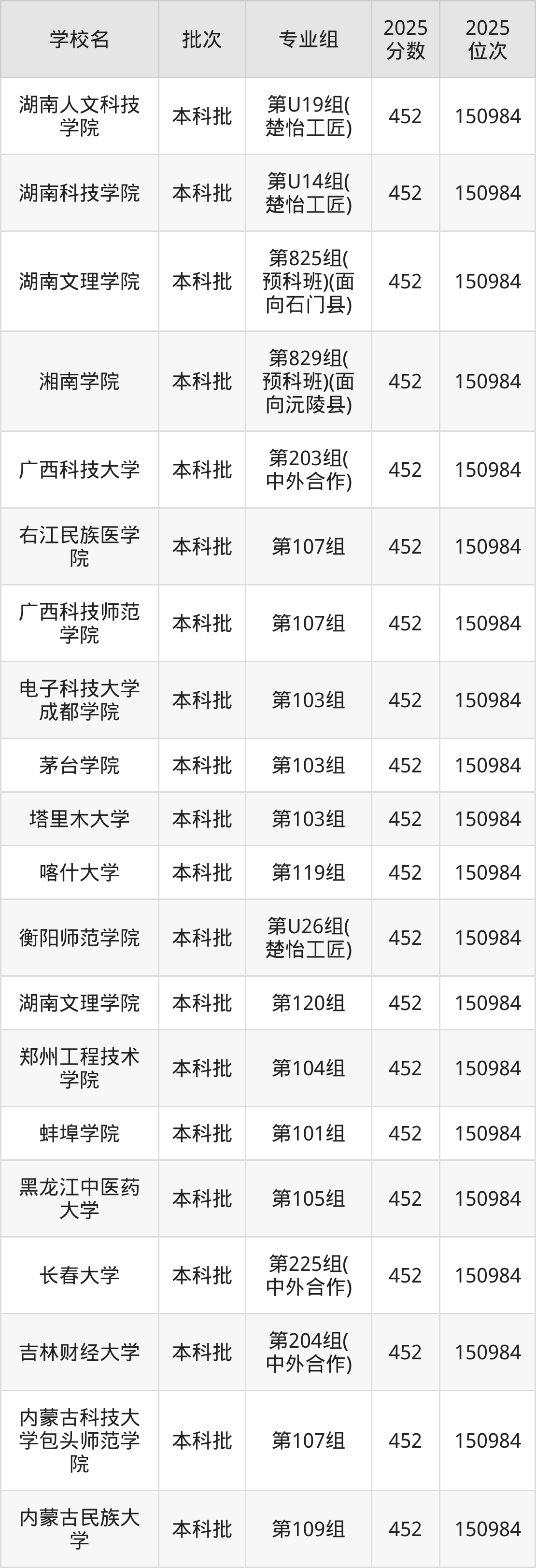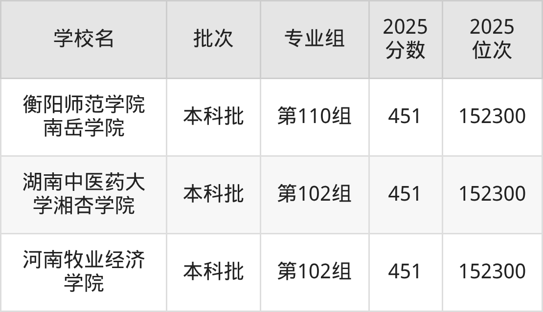 2025年湖南高考物理类451分(150985名~152300名)能上的大学有廊坊师范学院第103组、石家庄学院第107组、河北工程大学科信学院第101组、锦州医科大学第103组等。