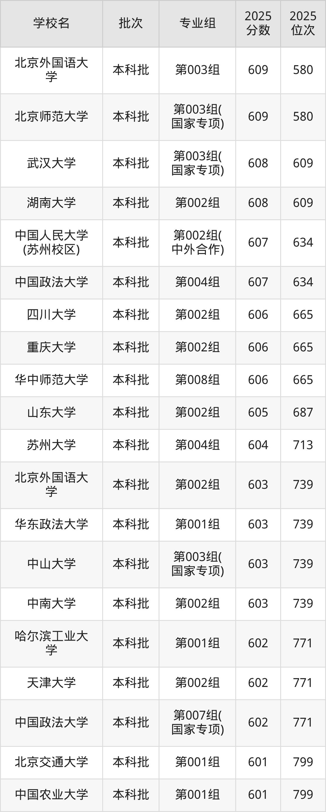 这些都是2026年高考历史类401名~426名考生可以报考的大学,更多学校名单如下表所示: