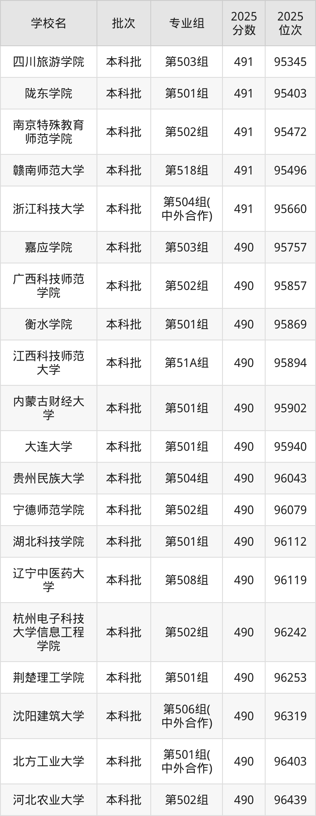 2025年江西高考物理类490分(95754名~97073名)能上的大学有吉林师范大学第502组、北方工业大学第501组(中外合作)、河北科技大学第503组、河北建筑工程学院第502组等。