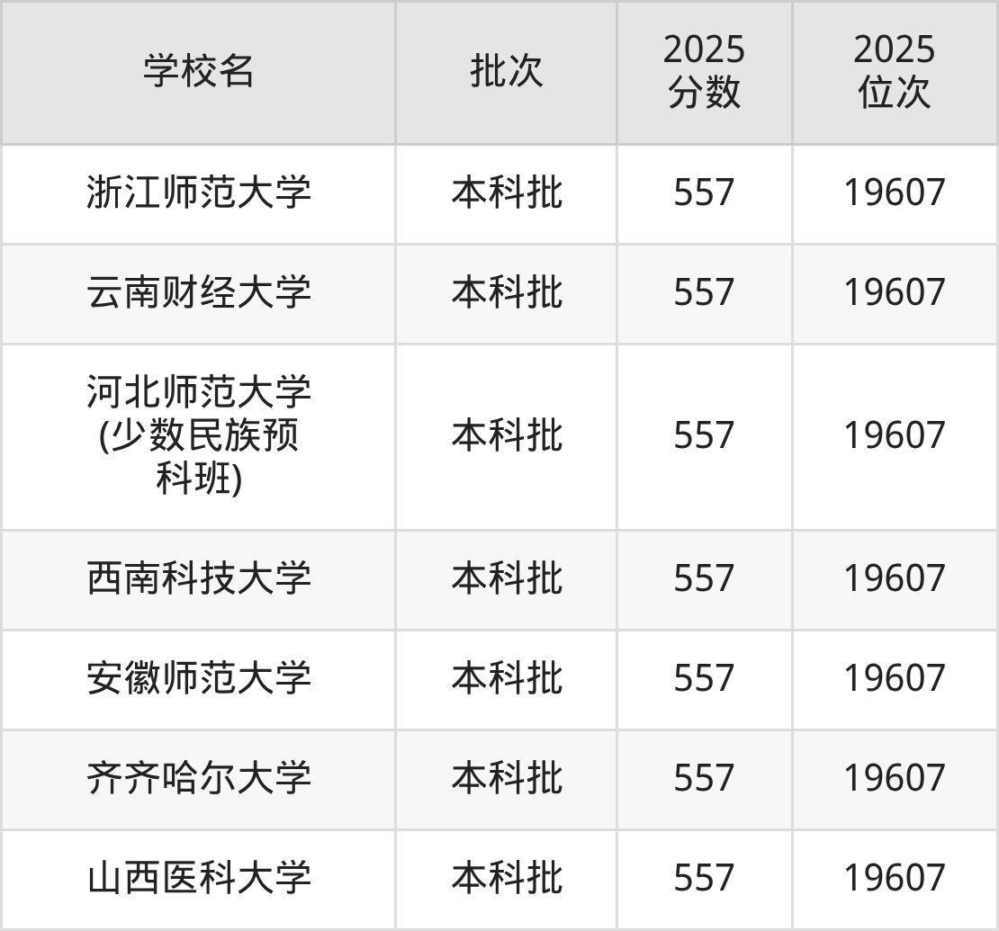 这些都是2026年高考历史类18764名~19202名考生可以报考的大学,更多学校名单如下表所示: