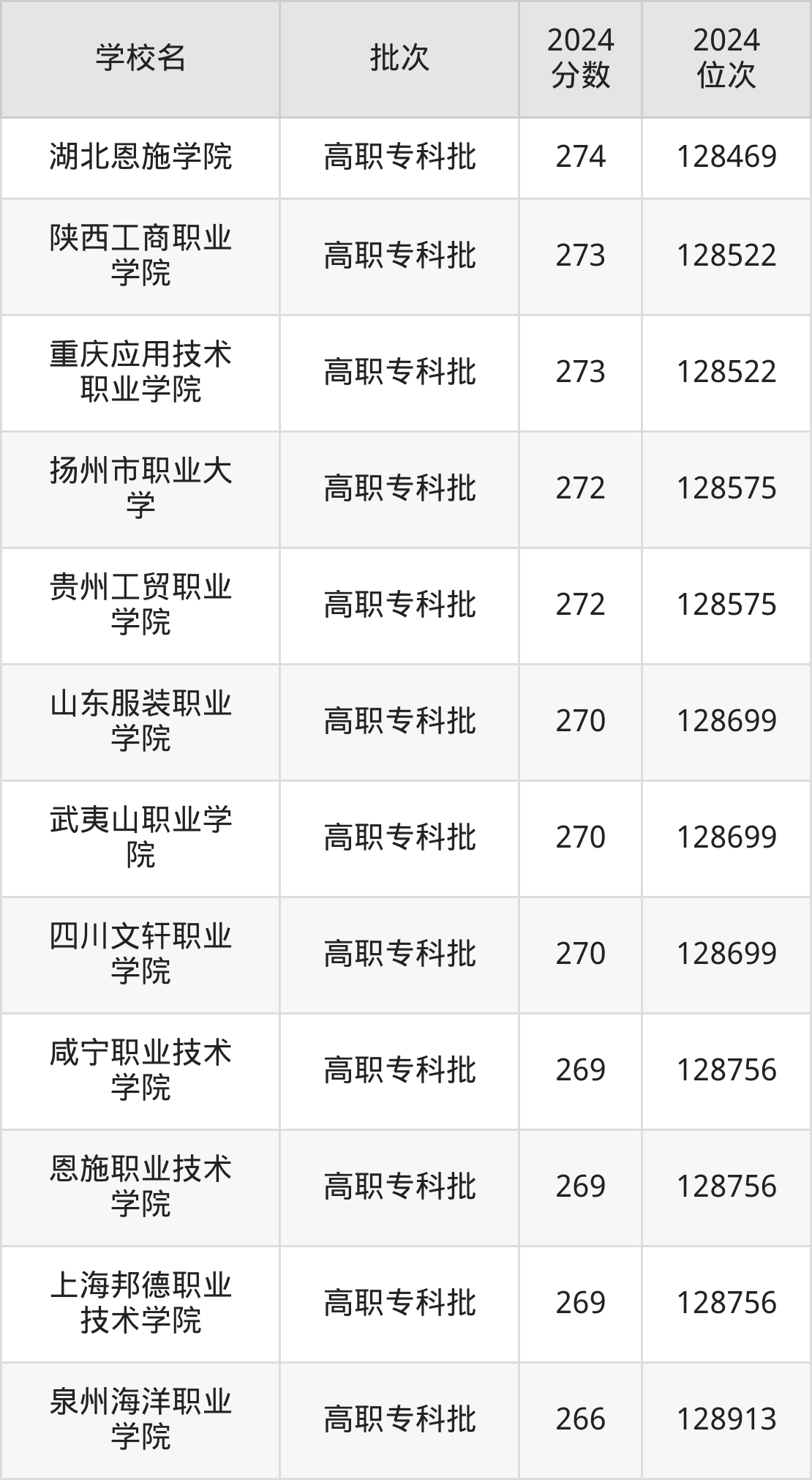 2024年云南高考文科274分(128408名~128469名)能上的大学有九江理工职业学院、湖北恩施学院。