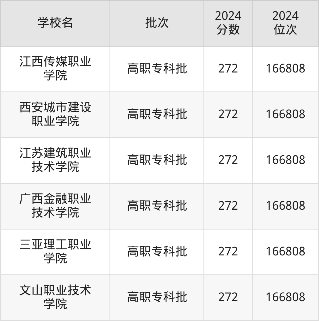 这些都是2025年高考理科166285名~166459名考生可以报考的大学,更多学校名单如下表所示: