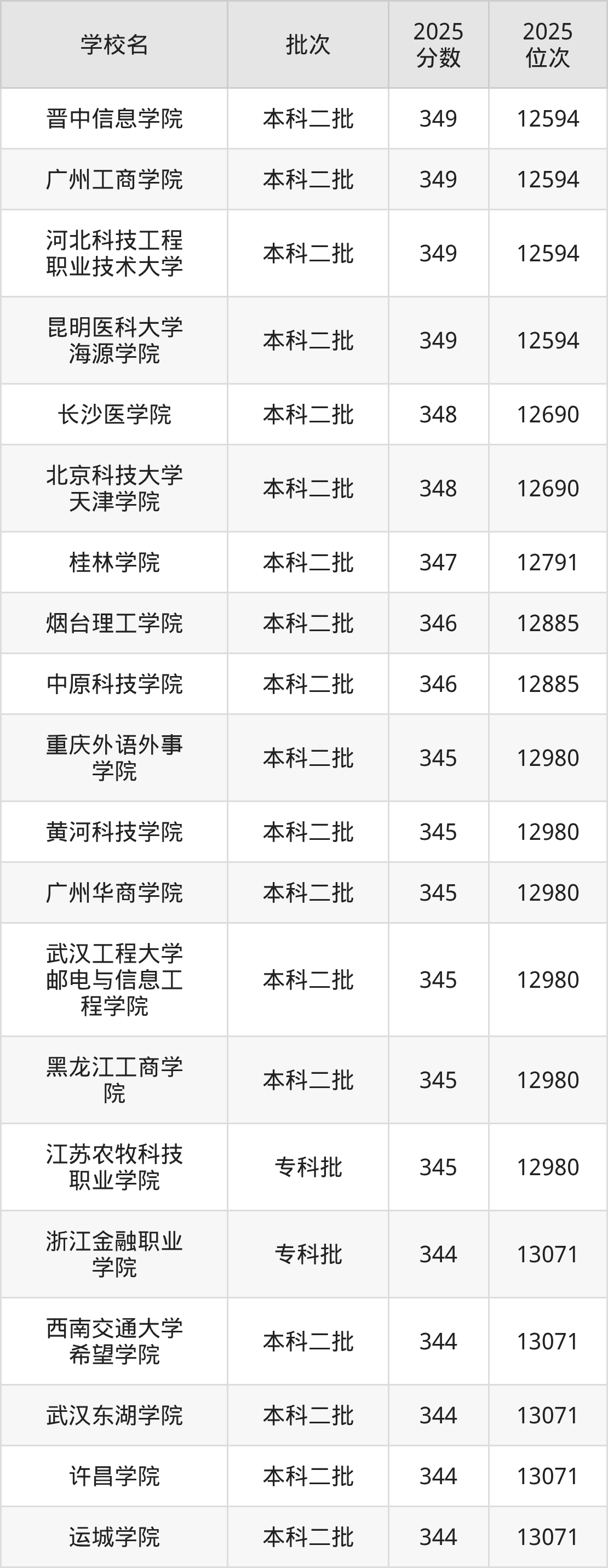 这些都是2026年高考文科13072名~13163名考生可以报考的大学,更多学校名单如下表所示: