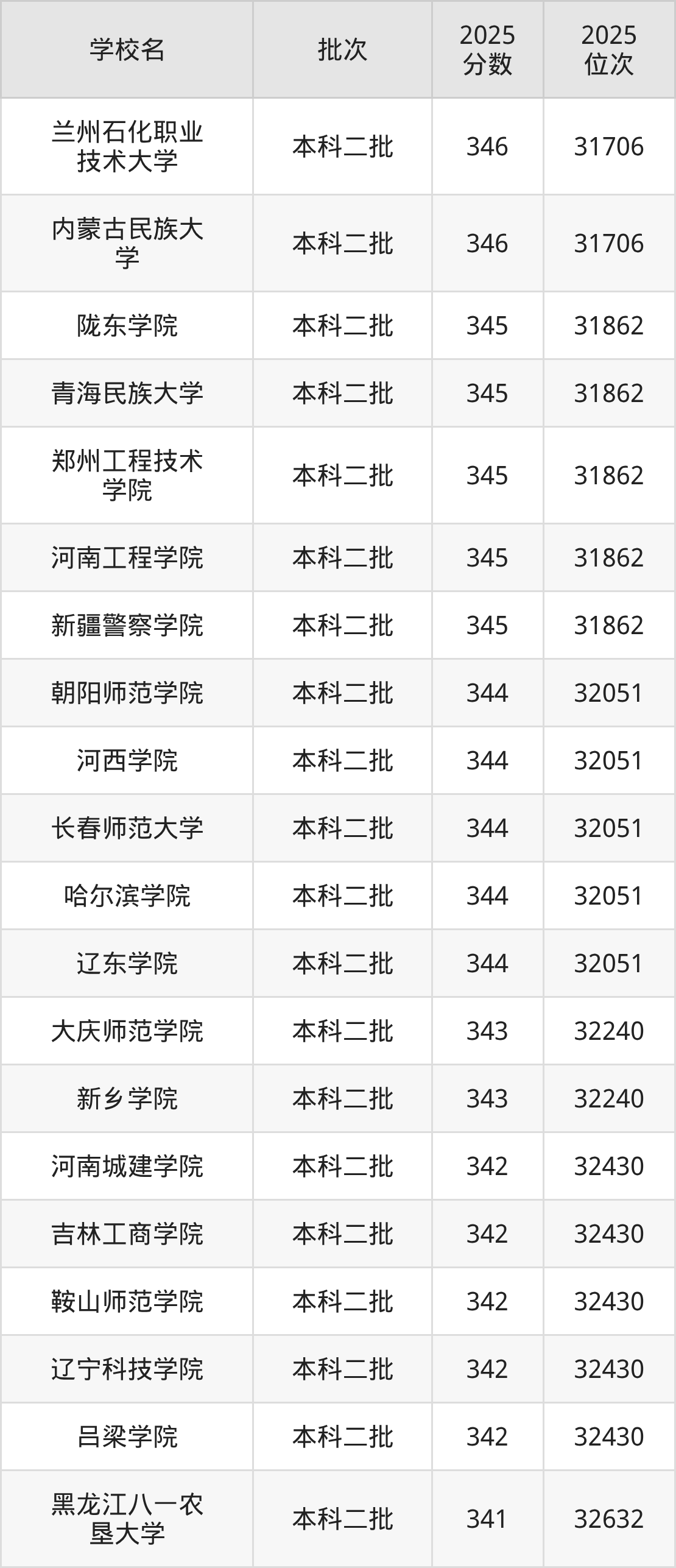 这些都是2026年高考理科32052名~32240名考生可以报考的大学,更多学校名单如下表所示: