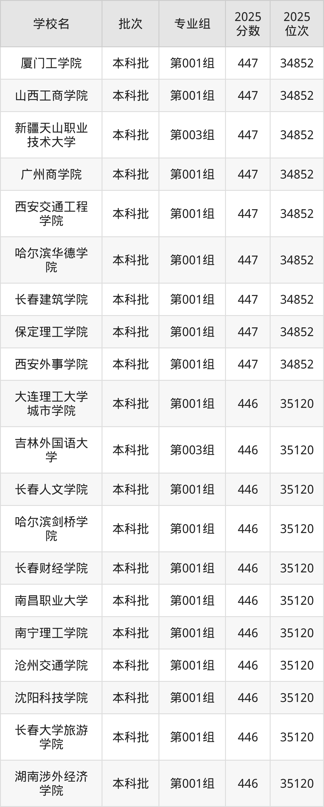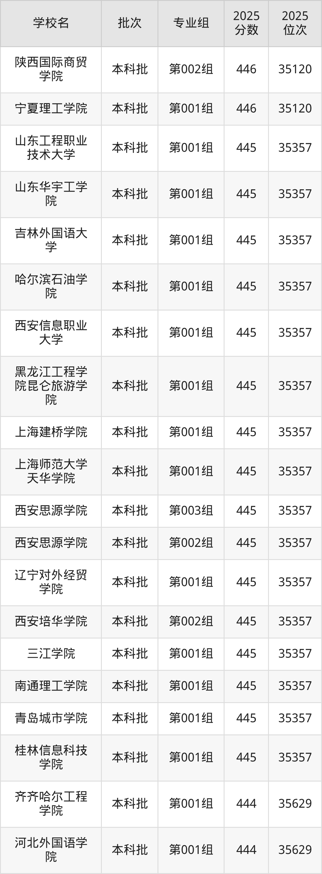 2025年山西高考历史类445分(35121名~35357名)能上的大学有辽宁对外经贸学院第001组、吉林外国语大学第001组、哈尔滨石油学院第001组、黑龙江工程学院昆仑旅游学院第001组等。