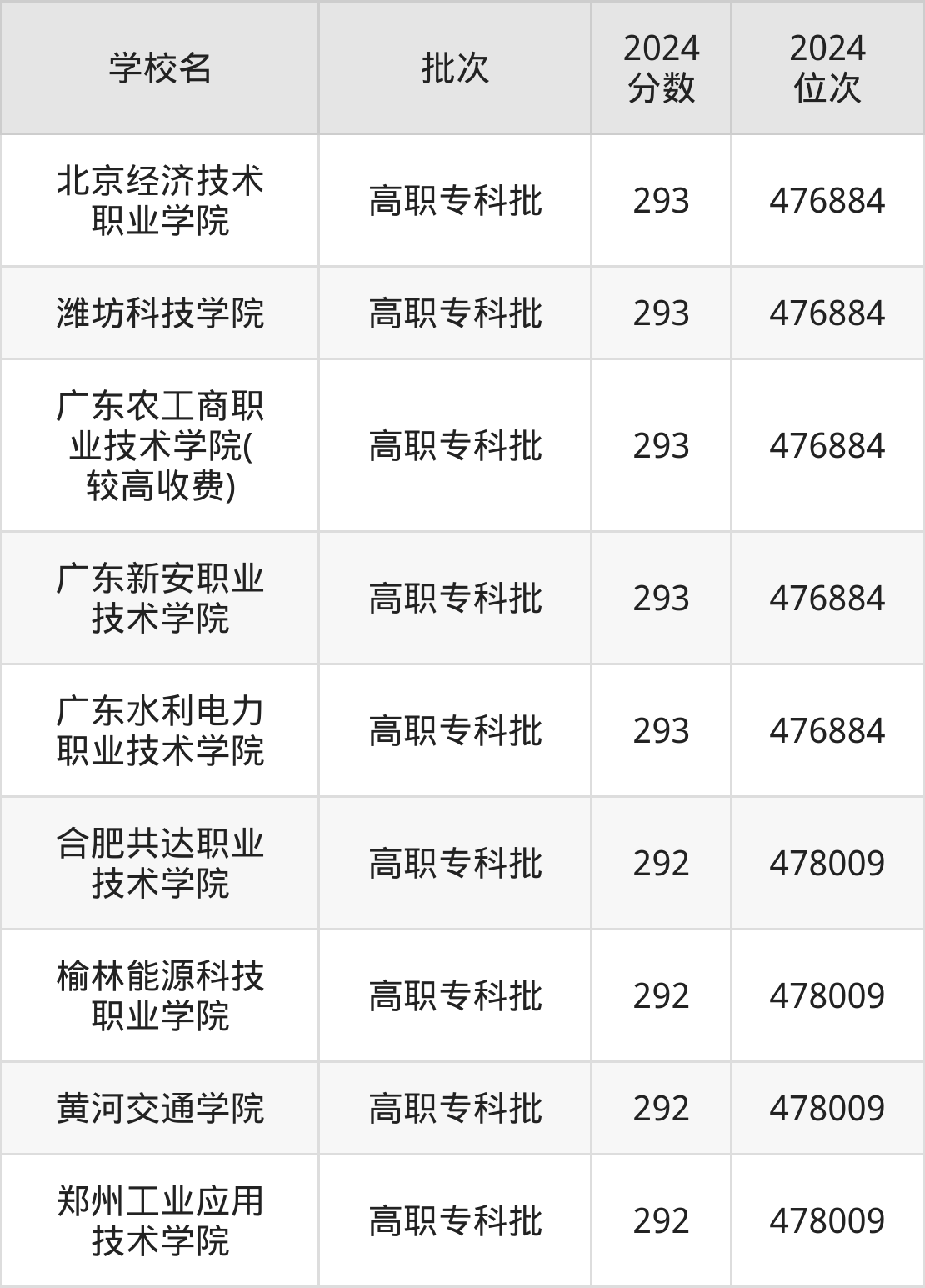 2024年河南高考理科292分(476886名~478010名)能上的大学有郑州工业应用技术学院、黄河交通学院、合肥共达职业技术学院、榆林能源科技职业学院。