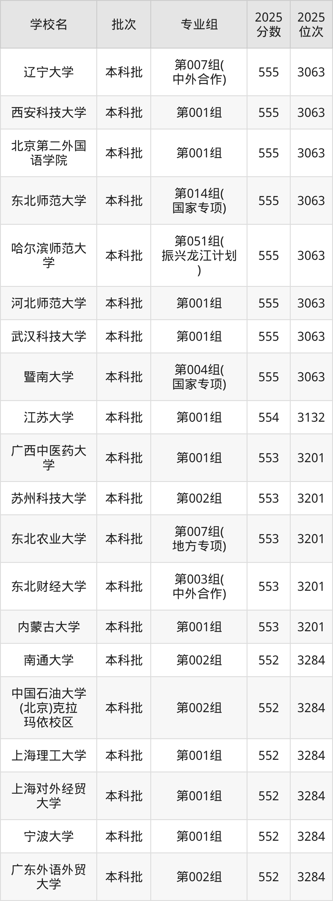 二、黑龙江547分位次排名能上的大学