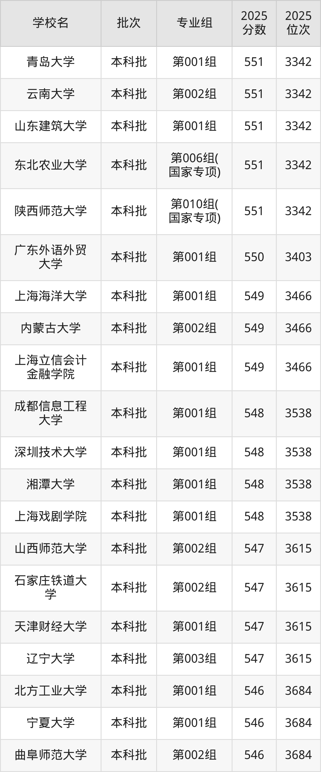 这些都是2026年高考历史类3539名~3615名考生可以报考的大学,更多学校名单如下表所示: