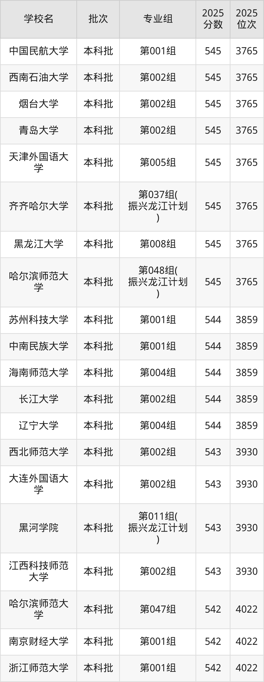 2025年黑龙江高考历史类547分(3539名~3615名)能上的大学有天津财经大学第001组、石家庄铁道大学第002组、山西师范大学第002组、辽宁大学第003组。