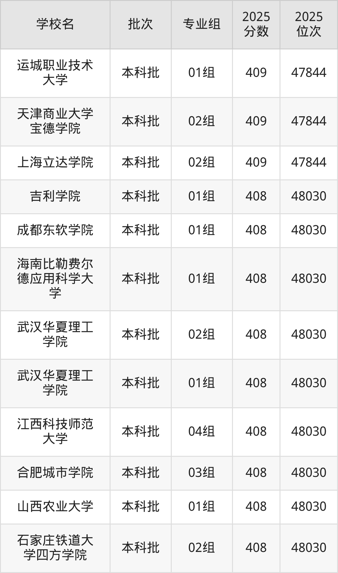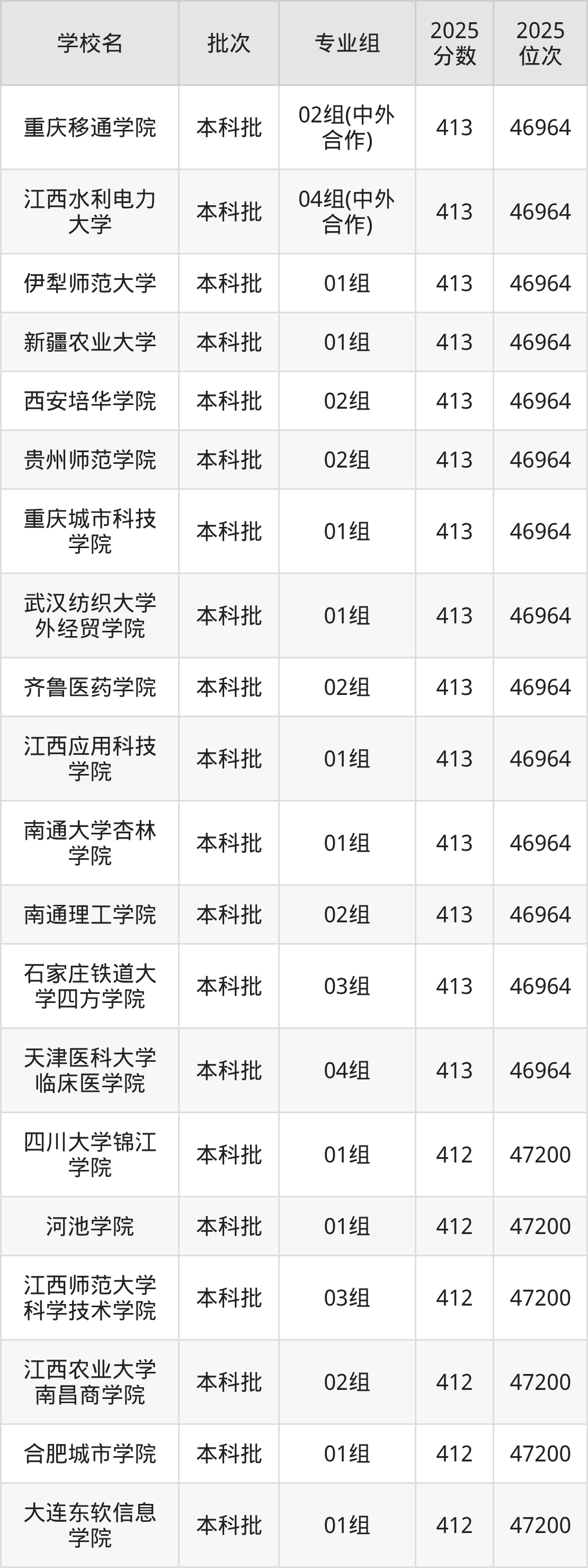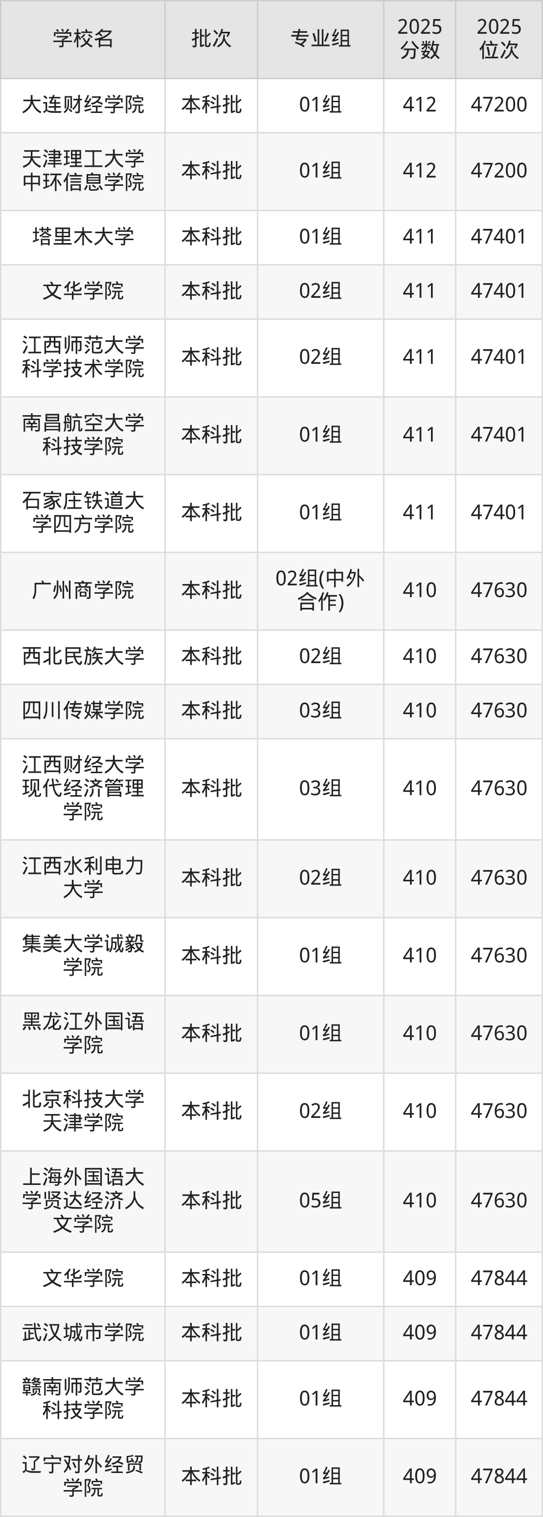 这些都是2026年高考47402名~47630名考生可以报考的大学,更多学校名单如下表所示: