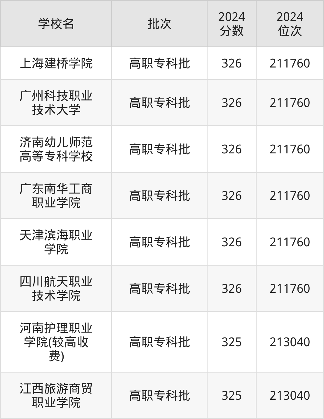 2024年河南高考文科325分(211761名~213040名)能上的大学有江西旅游商贸职业学院、河南护理职业学院(较高收费)。
