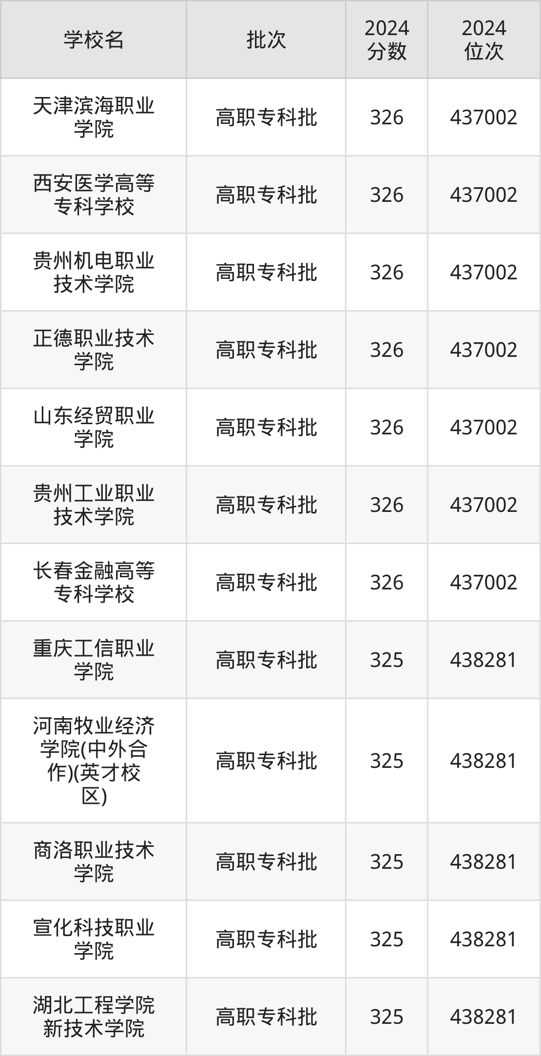 2024年河南高考理科325分(437004名~438282名)能上的大学有湖北工程学院新技术学院、宣化科技职业学院、商洛职业技术学院、河南牧业经济学院(中外合作)(英才校区)等。
