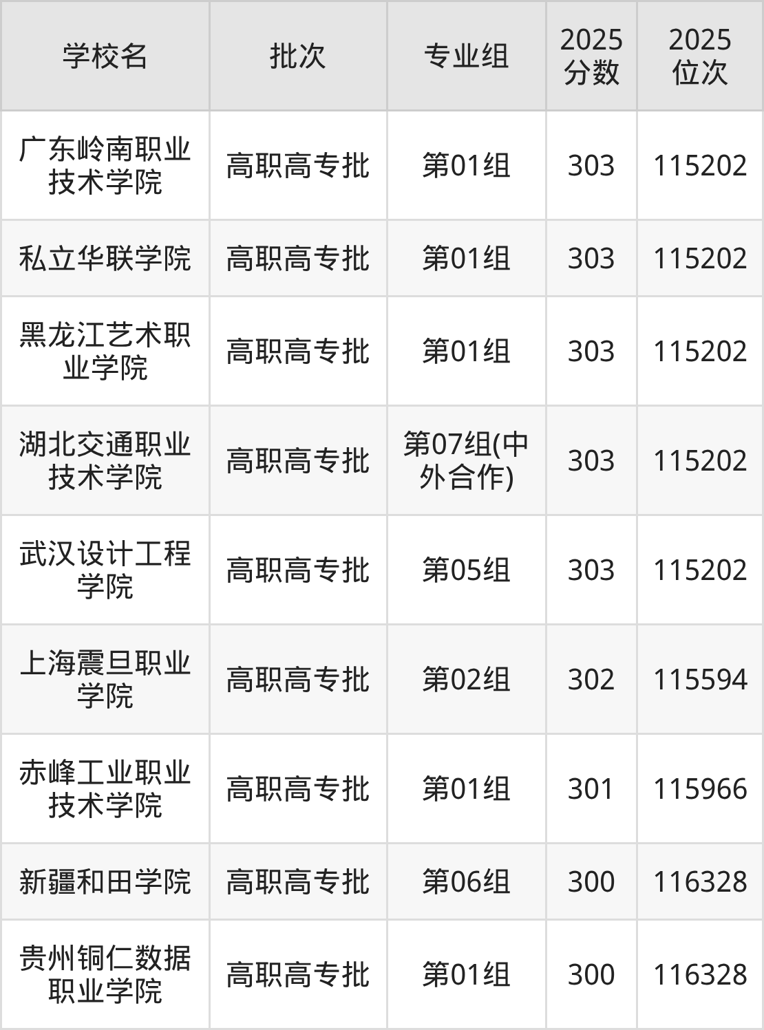 2025年湖北高考历史类301分(115595名~115966名)能上的大学有赤峰工业职业技术学院第01组。