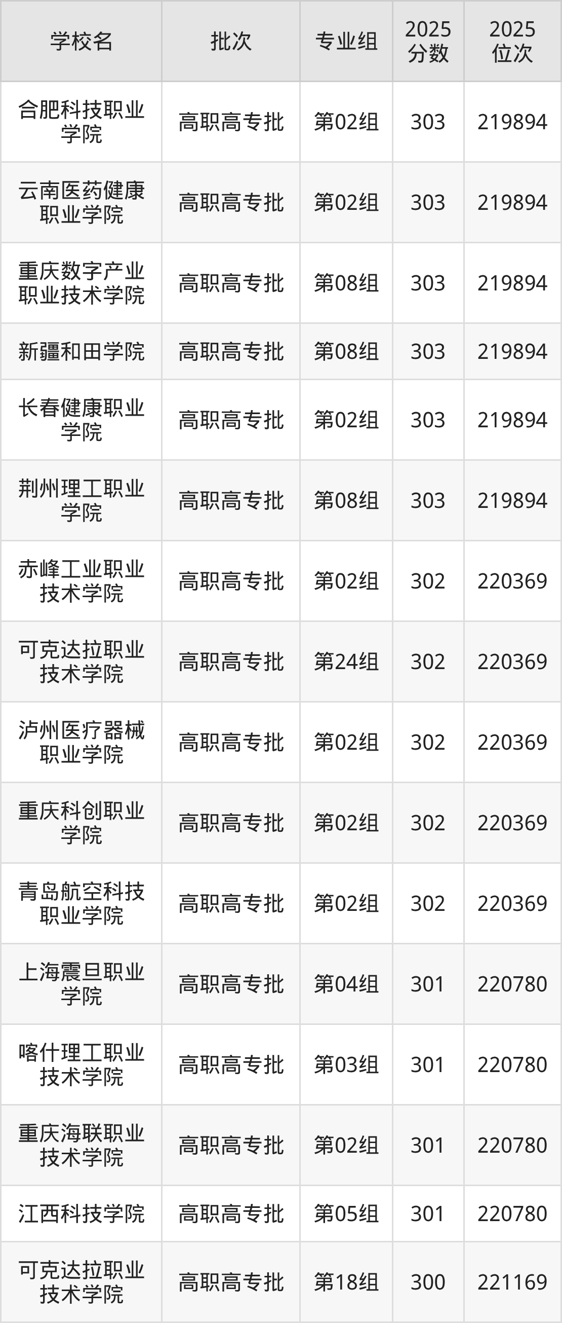 2025年湖北高考物理类301分(220370名~220780名)能上的大学有江西科技学院第05组、上海震旦职业学院第04组、重庆海联职业技术学院第02组、喀什理工职业技术学院第03组。