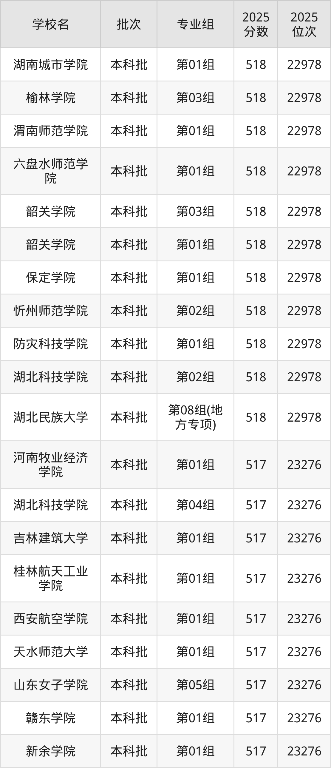 这些都是2026年高考历史类23277名~23607名考生可以报考的大学,更多学校名单如下表所示: