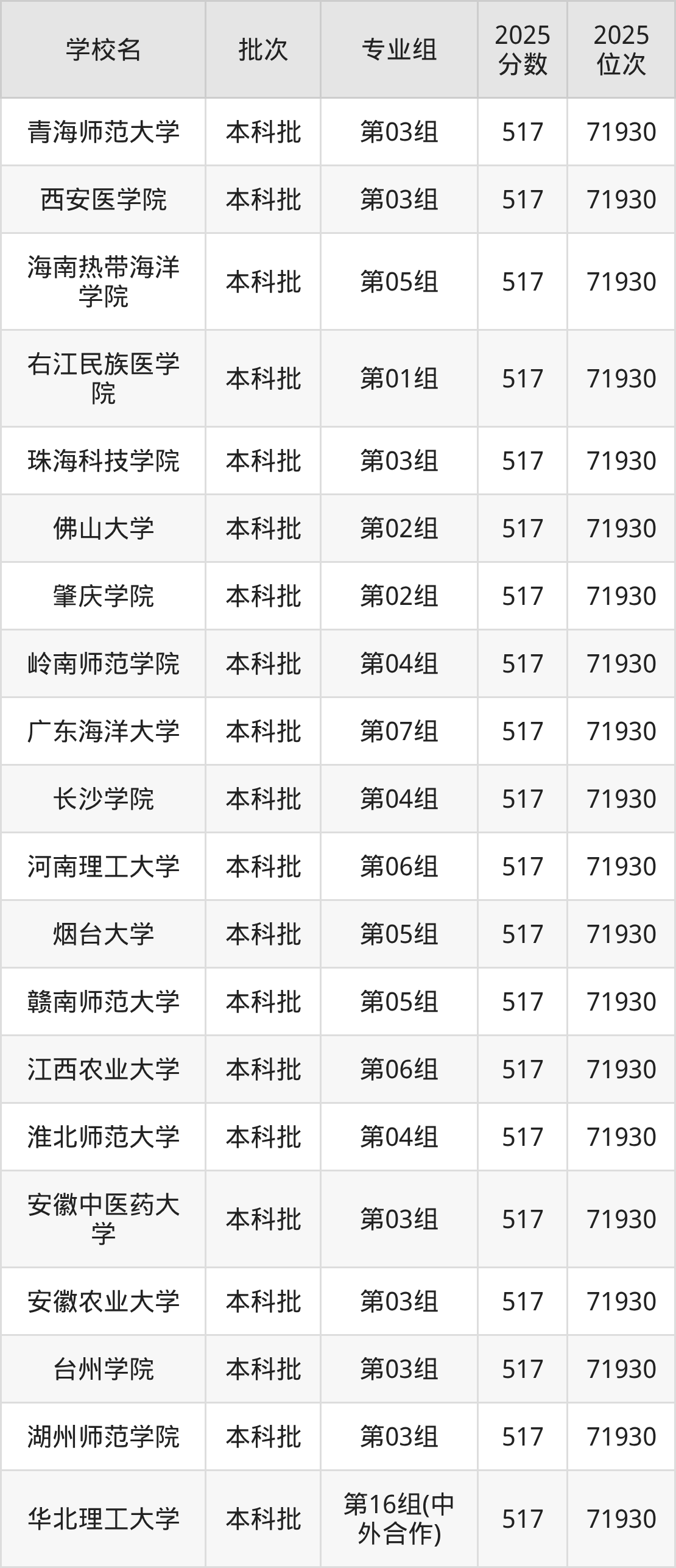 这些都是2026年高考物理类71931名~72834名考生可以报考的大学,更多学校名单如下表所示: