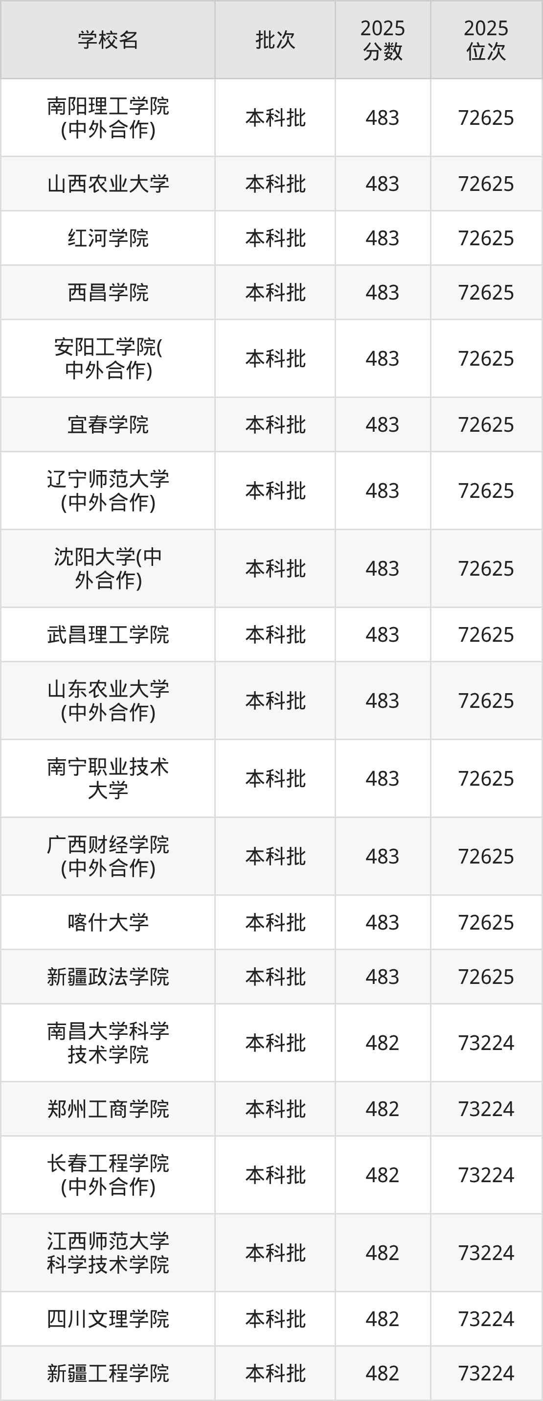 这些都是2026年高考历史类22216名~22503名考生可以报考的大学,更多学校名单如下表所示: