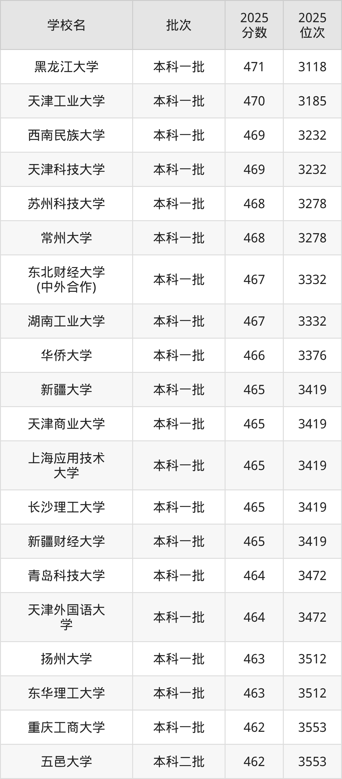这些都是2026年高考文科3594名~3639名考生可以报考的大学,更多学校名单如下表所示: