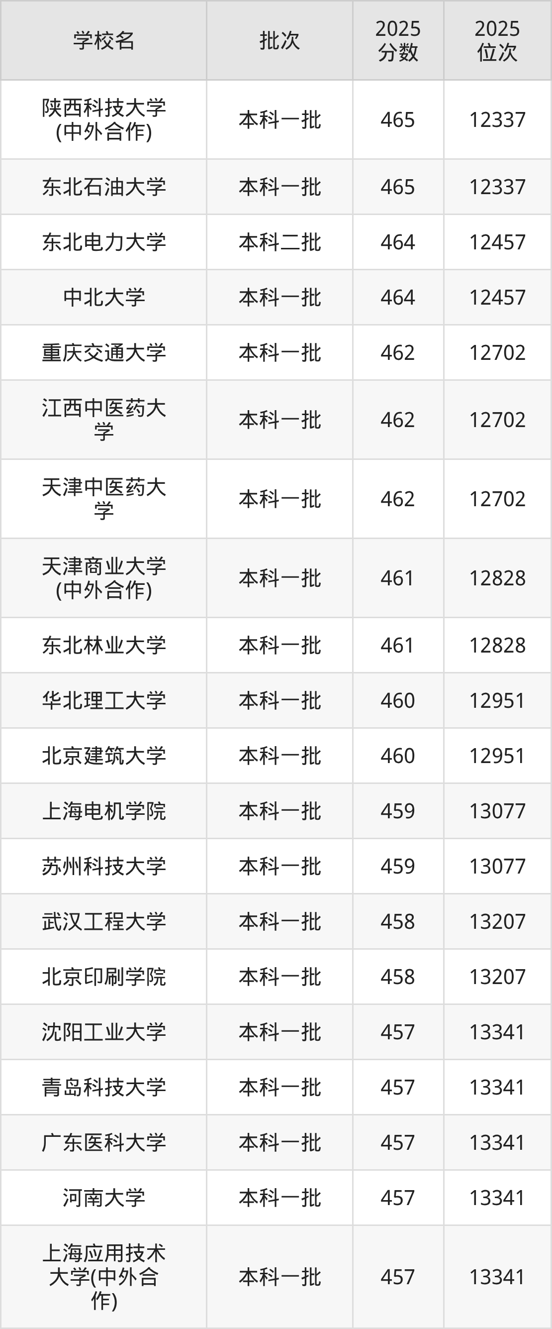 2025年新疆高考理科460分(12829名~12951名)能上的大学有北京建筑大学、华北理工大学。