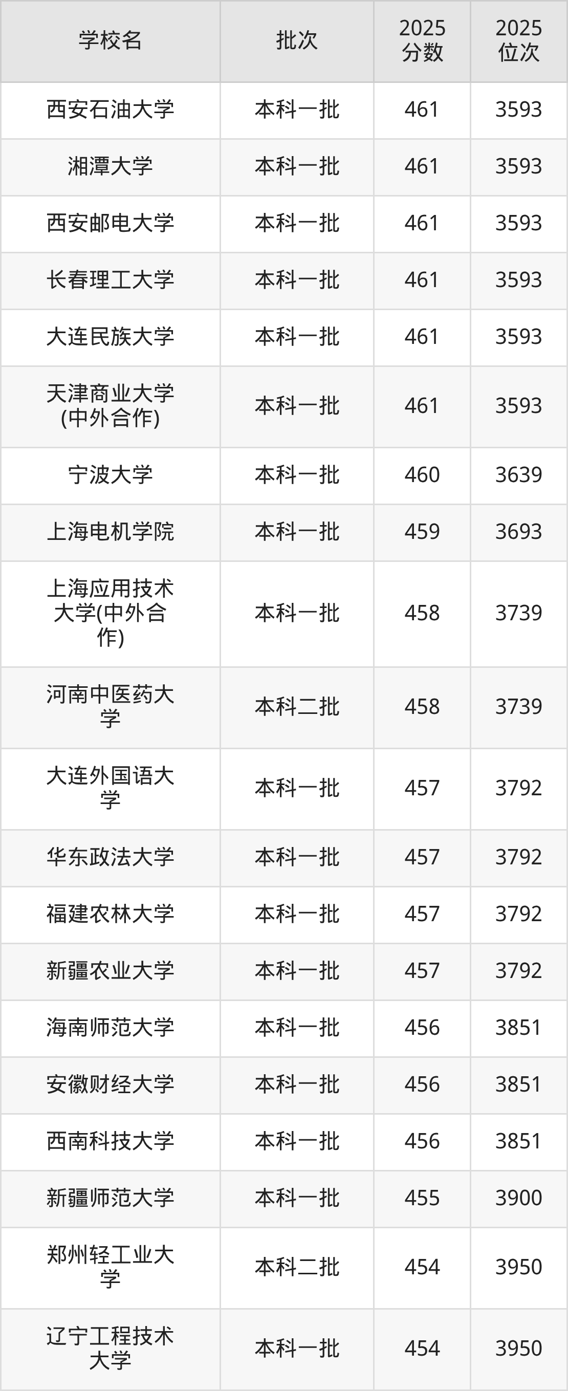 新疆高考460分:文科排名3639位、理科排名12951位。该分数位次对应能上的大学文科有宁波大学;理科有北京建筑大学、华北理工大学,更多名单如下文所示,2026届考生可参考。