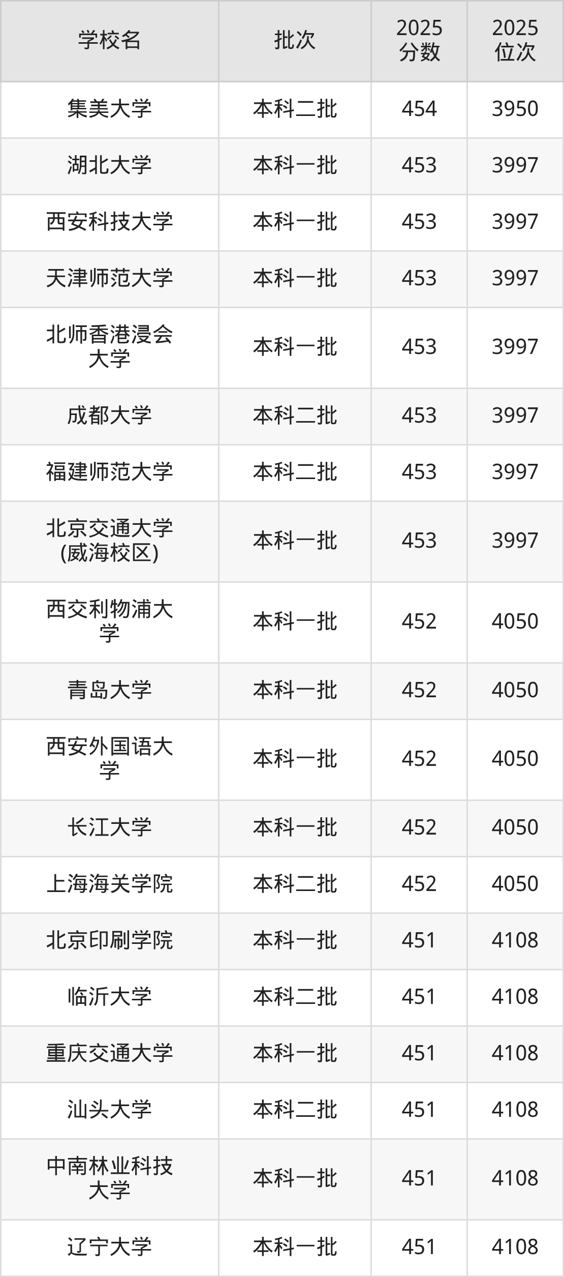这些都是2026年高考理科12829名~12951名考生可以报考的大学,更多学校名单如下表所示:
