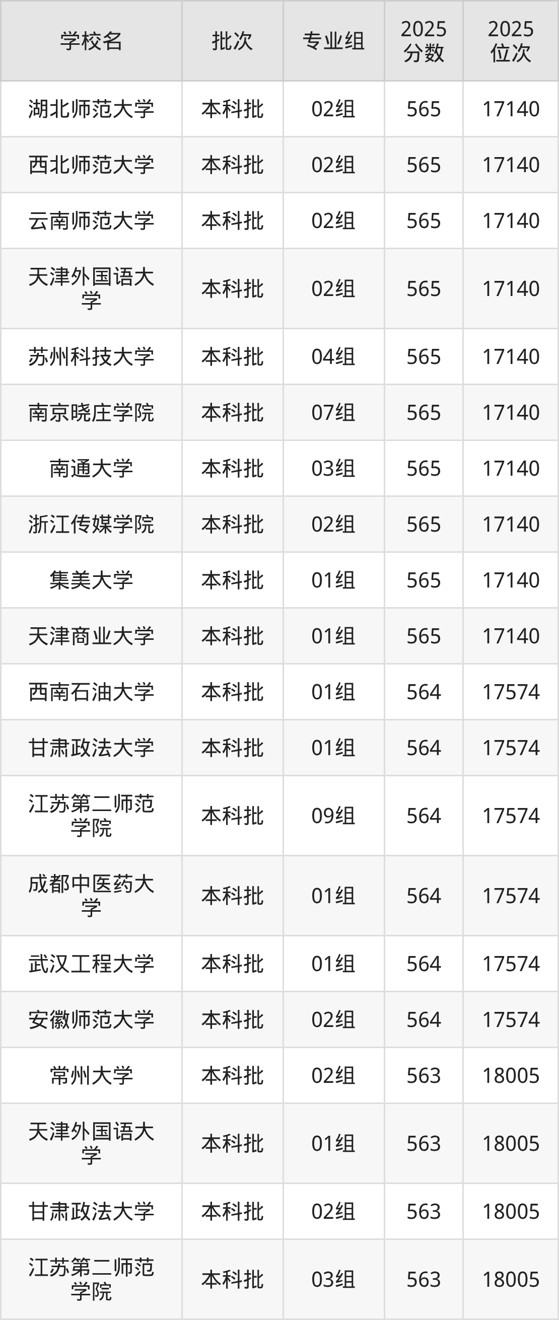 这些都是2026年高考历史类17575名~18005名考生可以报考的大学,更多学校名单如下表所示: