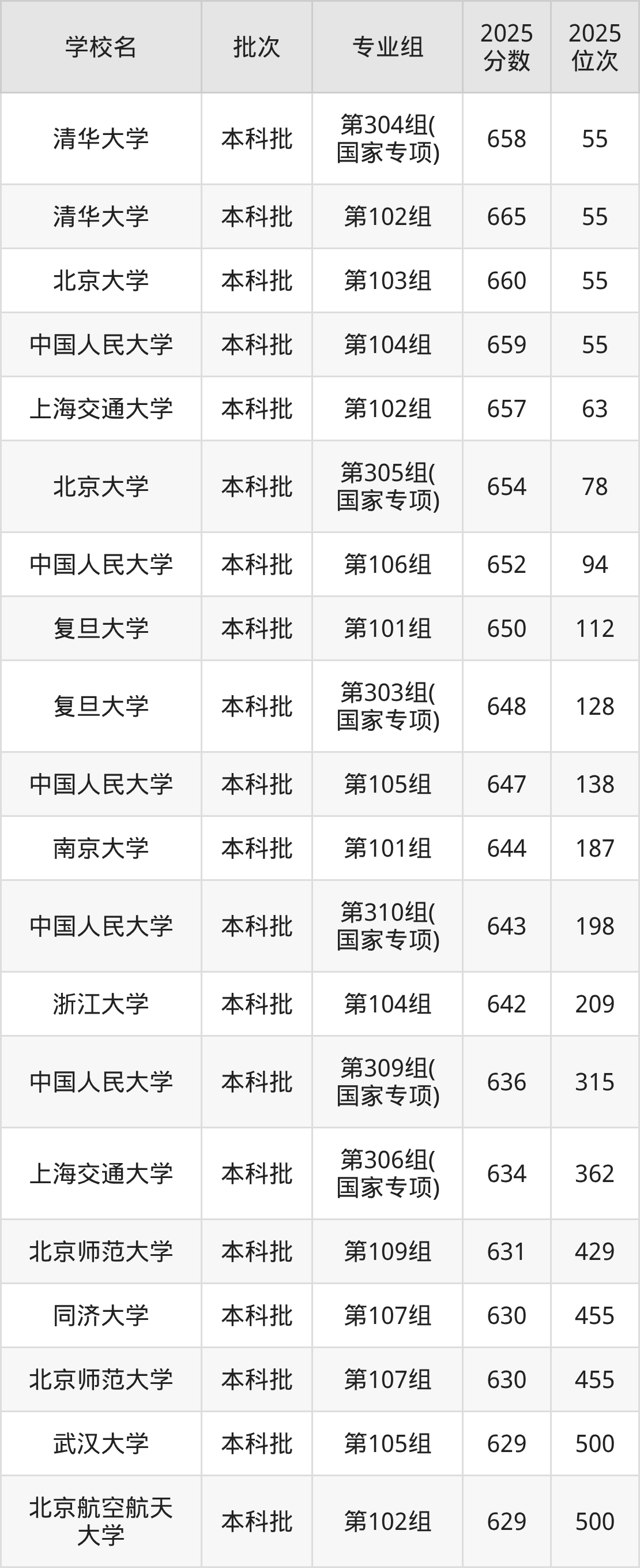 另外录取位次低于该区间(较稳妥)的有上海交通大学第306组(国家专项)(362名)、北京师范大学第109组(429名)等;录取位次高于该区间(可冲)的有浙江大学第104组(209名)、中国人民大学第310组(国家专项)(198名)等。