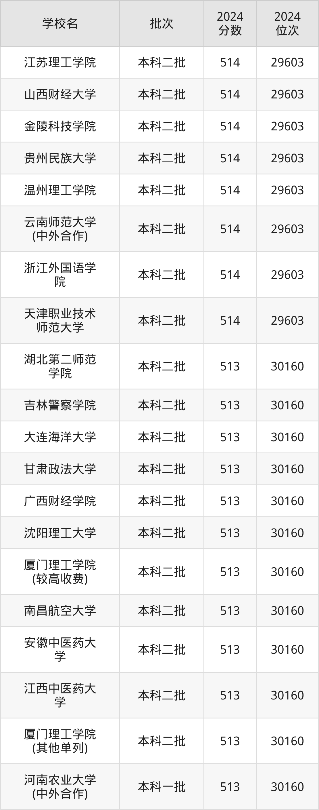 2024年河南高考文科513分(29604名~30160名)能上的大学有哈尔滨医科大学、南昌航空大学、沈阳理工大学、广西财经学院等。