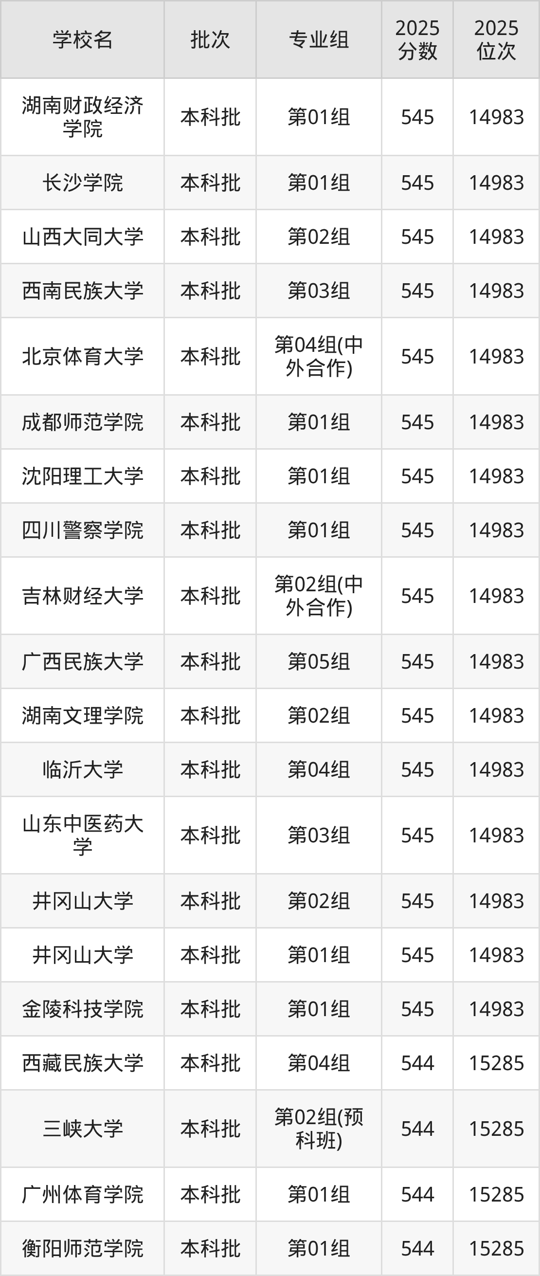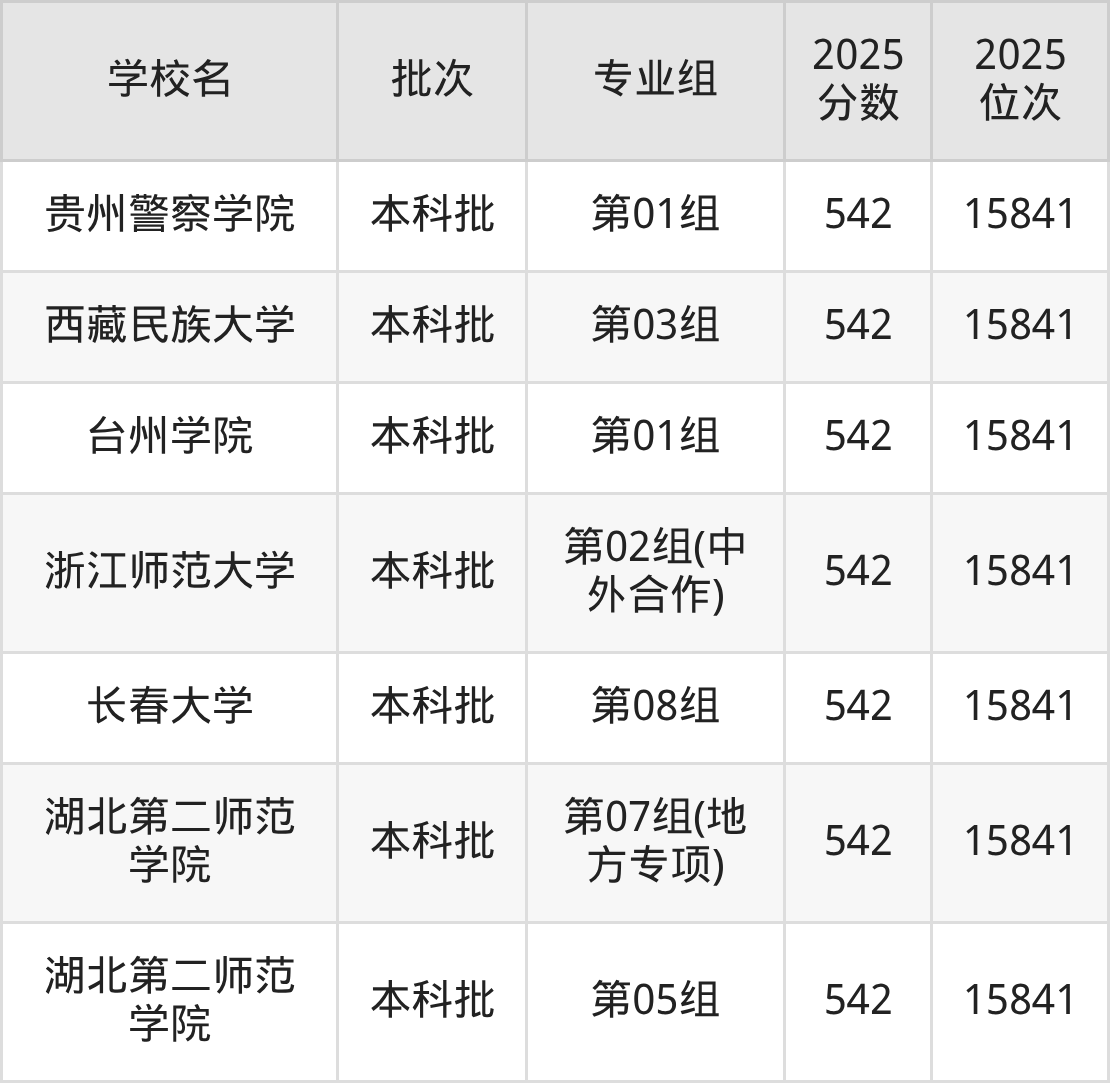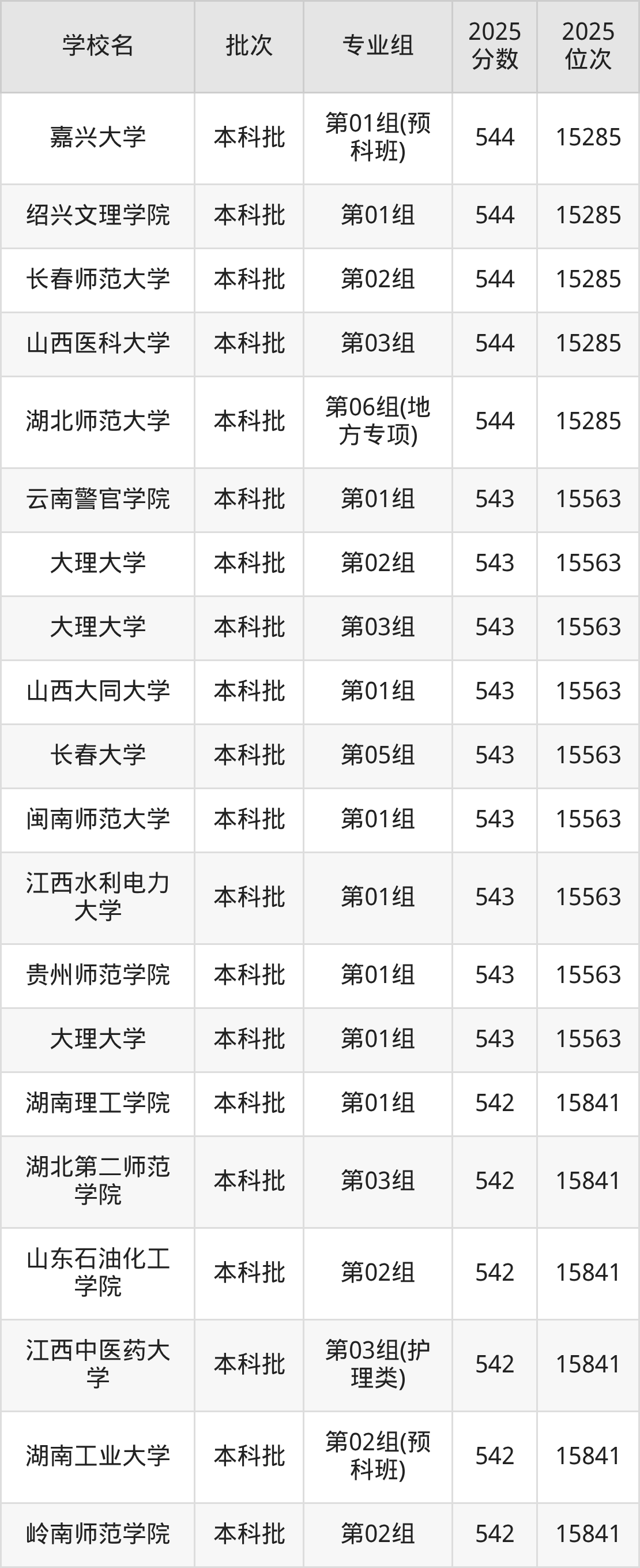 2025年湖北高考历史类543分(15286名~15563名)能上的大学有山西大同大学第01组、长春大学第05组、闽南师范大学第01组、江西水利电力大学第01组等。