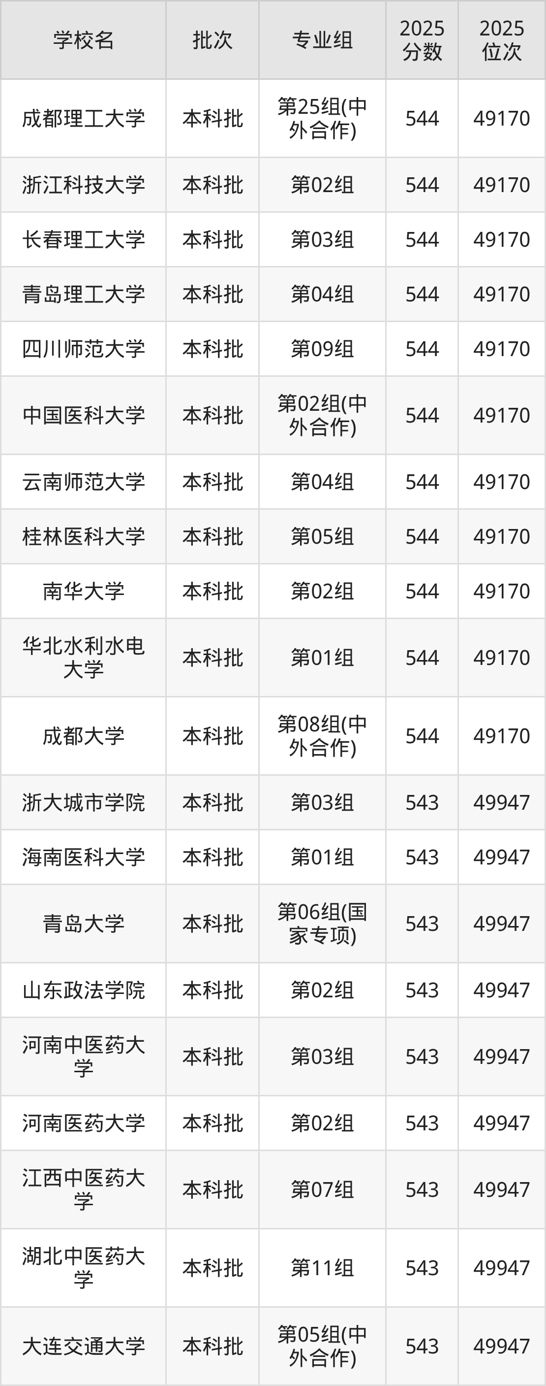 另外录取位次低于该区间(较稳妥)的有武汉工程大学第09组(国家专项)(50752名)、湖北大学第22组(中外合作)(50752名)等;录取位次高于该区间(可冲)的有中国医科大学第02组(中外合作)(49170名)、长春理工大学第03组(49170名)等。