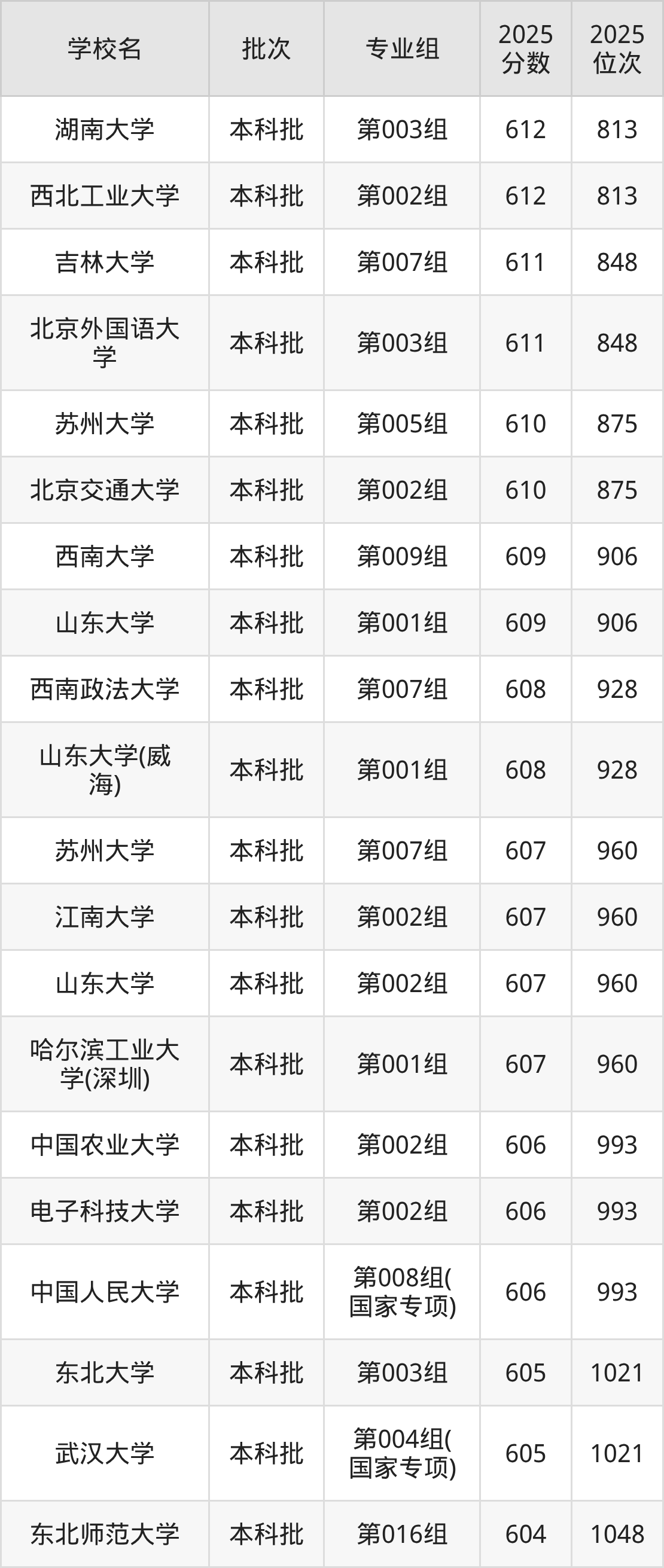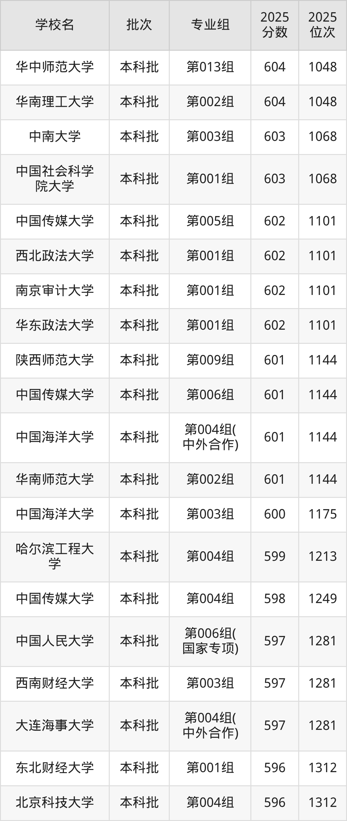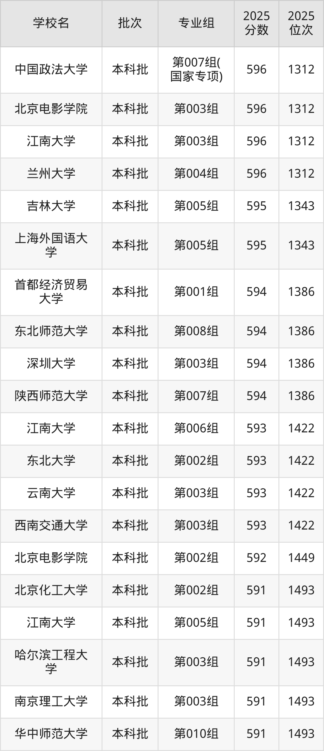 另外录取位次低于该区间(较稳妥)的有深圳大学第003组(1386名)、首都经济贸易大学第001组(1386名)等;录取位次高于该区间(可冲)的有中国政法大学第007组(国家专项)(1312名)、北京电影学院第003组(1312名)等。