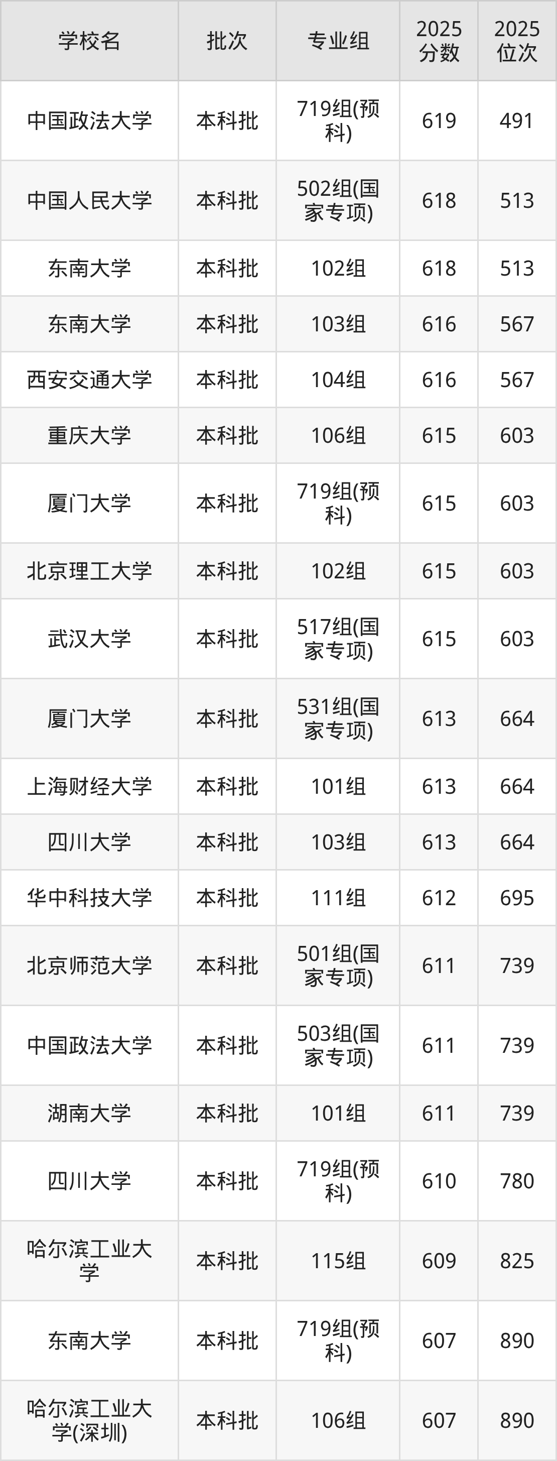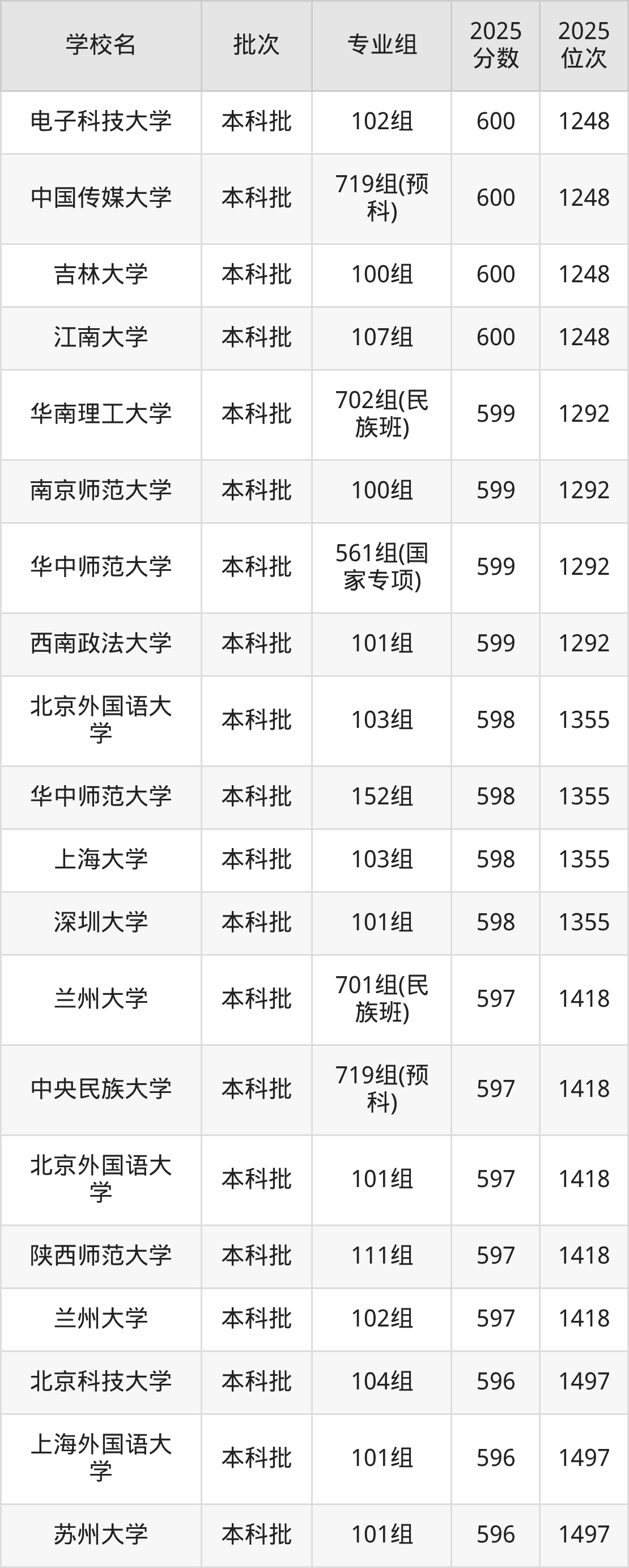 由于高考录取分数线历年波动较大,因此本文以该分数对应的位次排名为大家整理能上的大学名单。
