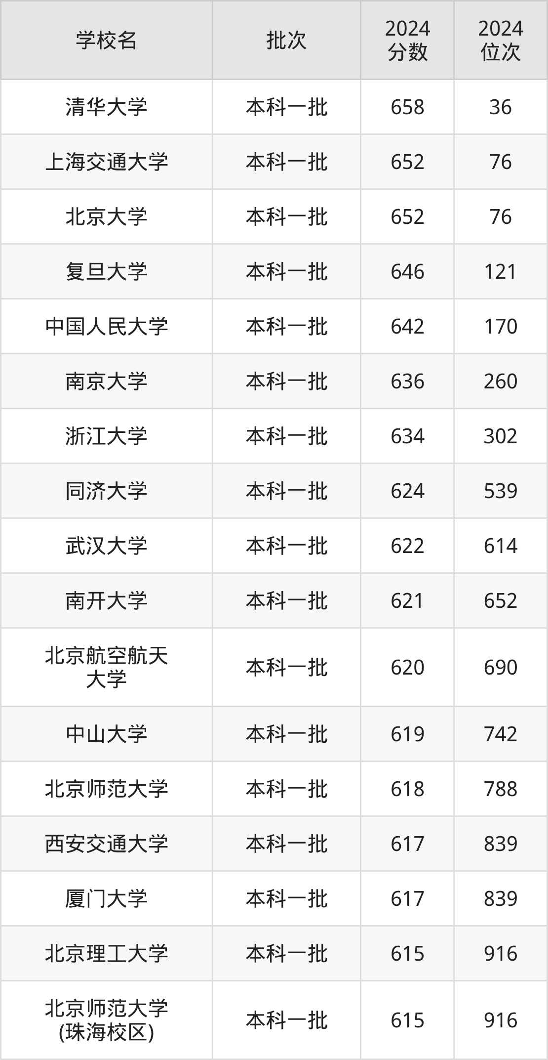 由于高考录取分数线历年波动较大,因此本文以该分数对应的位次排名为大家整理能上的大学名单。